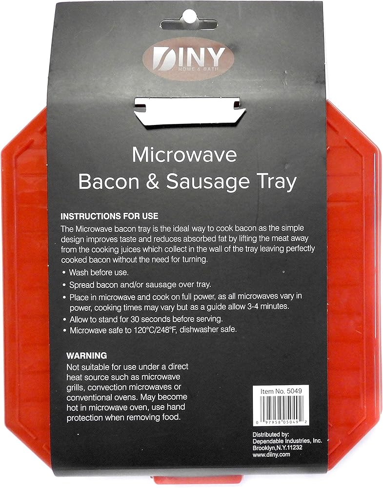 Dependable Industries brings you a meat and vegetable microwave cooker. Crispy bacon from the microwave. perfect every time! This microwave bacon platter features raised ridges so grease drains off and elevates strips for a crisp, crunchy taste. Bacon tray makes less mess than cooking on the stove top. Cooks sausages, hot dogs, bacon too!