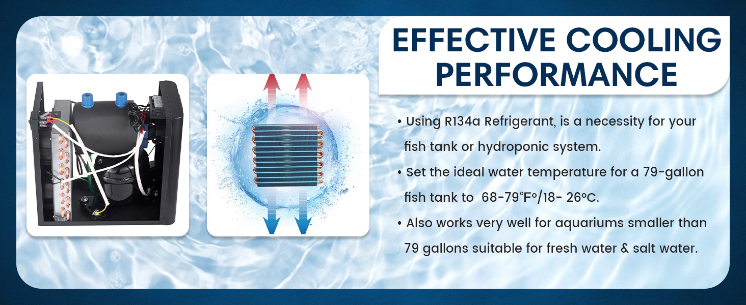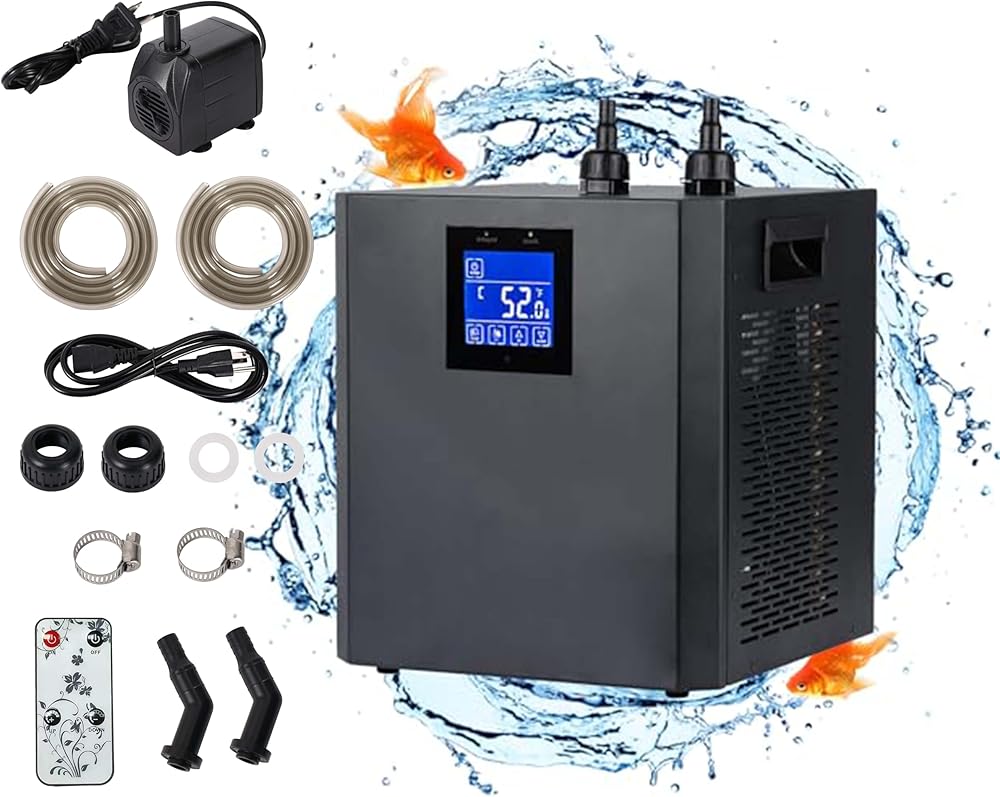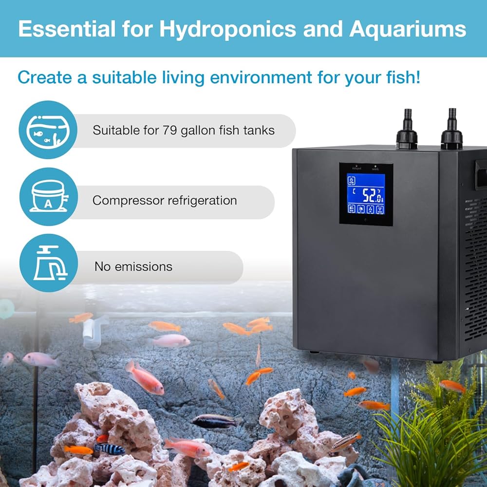 【تأثير تبريد مطور】قم بإنشاء بيئة آمنة ومستقرة لحوض السمك الخاص بك باستخدام مبرد Ezcasch Aquarium Chiller الموفر للطاقة. يستخدم التبريد R134a وتثبيت التبريد الفعال الدوري لتوفير درجة حرارة ثابتة تتراوح بين 68-79 درجة فهرنهايت وهي آمنة لجميع أنواع الكائنات المائية. (نطاق درجة الحرارة المتاح من 32-122 درجة فهرنهايت)
