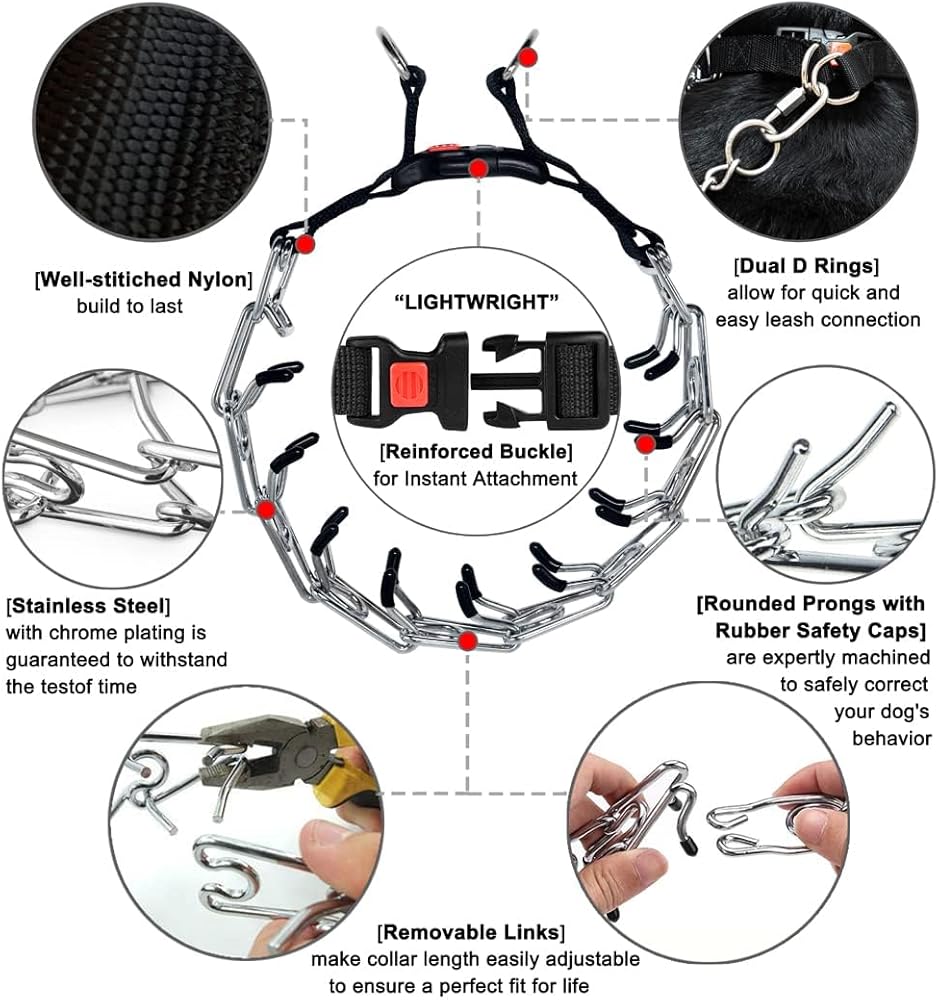 قوي ومتين ⫸ مصنوع من الفولاذ المقاوم للصدأ عالي الجودة، وقد صُمم طوق الكلاب هذا ليدوم طويلاً. بالإضافة إلى ذلك، يحتوي هذا الطوق المخفي على إبزيم سريع التحرير مصمم خصيصًا لجعل تأمين وإزالة المقود من كلبك أمرًا سهلاً! تطبيق آمن ومريح لكلبك سيجعل حياتك أسهل بكثير.