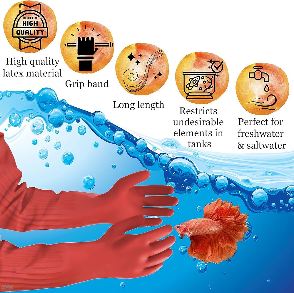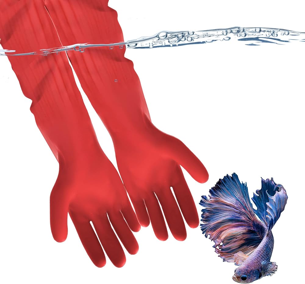 Why should I buy your rubber gloves instead of nitrile? Our high-quality and durable rubber gloves are reasonably priced than those made of nitrile or man-made rubber. The raw material that is used is not composed of synthetic material, making it the best essential aid for home use. When our glove is poked or punctured, the tear will not go wide enough to break the whole glove. You can still reuse it for other non-liquid exposed chores. Unlike nitrile or vinyl gloves, a slight rip can crawl and loses its usefulness. Ours is the best suitable hand gear for the household, while nitrile is for medical and industrial utility. Are the gloves susceptible to reaction? Less than 1% of the US population are hypersensitive to rubber. It is a rare condition for most people and new cases of this form are less common nowadays. One thing to know if you're sensitive to rubber is when your body reacts by just simply holding a balloon, getting bandaged, or exposed to any rubber-based product. Those people with Spina Bifida, rubber sensitivity, or those who undergo multiple medical surgeries and procedures are most likely susceptible. Why do I need these if I have a scrub brush? Your fish deserve a spotless fortress and these gloves give them just that. With an extended scrub brush, you sure can maintain the aquarium, but you'll miss some spots and grime that can accumulate over time. With these gloves, you can reach even the tightest corners with a smaller brush. You can also use them to organize the tank with precision rather than use a pole and that will only stir up dirt and cause a commotion. Are these gloves a worthwhile investment? For the price of a movie ticket, these gloves will serve you and your aquarium community for years to come. And if you have several aquariums in your home, buying multiple pairs, one for each, won't set you back by much or have you breaking the bank. Many aquarium owners don't appreciate the usefulness of gloves initially but they always come around.