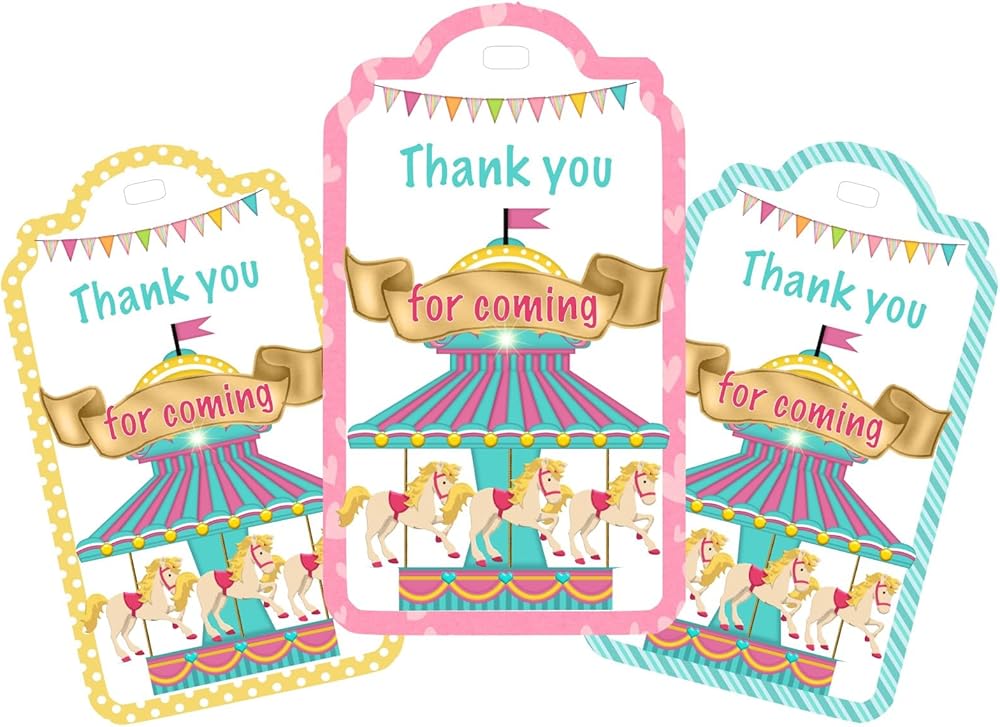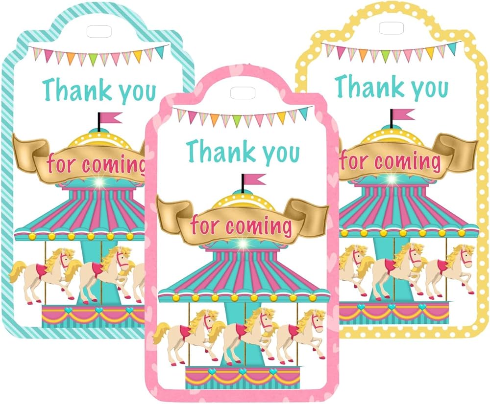 5. Versatile and Irresistible: Whether it's a lively birthday bash, a heartwarming baby shower, or any special occasion, our Enchanted Carousel Thank You Tags offer the final touch to convey your gratitude with flair.