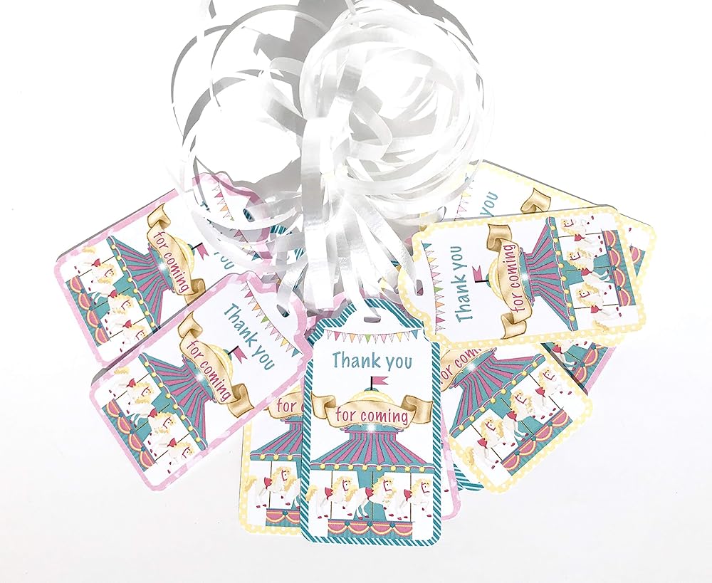 1. Mesmerize Your Guests: Our Enchanted Carousel Thank You Tags add an element of wonder to your event. The captivating carousel design will mesmerize your guests, leaving them with unforgettable memories.