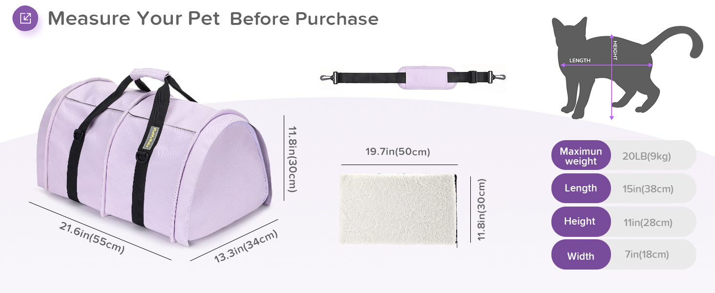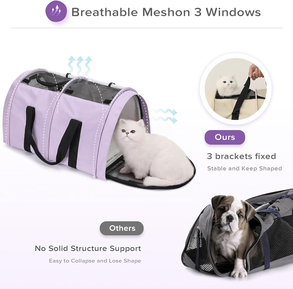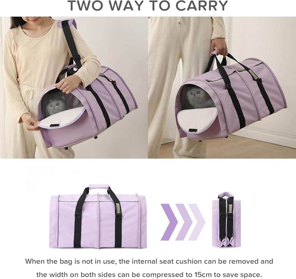 حاملة الحيوانات الأليفة، حاملة قطط ناعمة الجوانب للقطط المتوسطة والجرو التي يصل وزنها إلى 20 رطلاً، تأتي مع نافذة شبكية علوية قابلة للإزالة من صوف الخراف، حاملة حقائب الحيوانات الأليفة قابلة للغسل وقابلة للتنفس للسفر في الهواء الطلق (أرجواني)