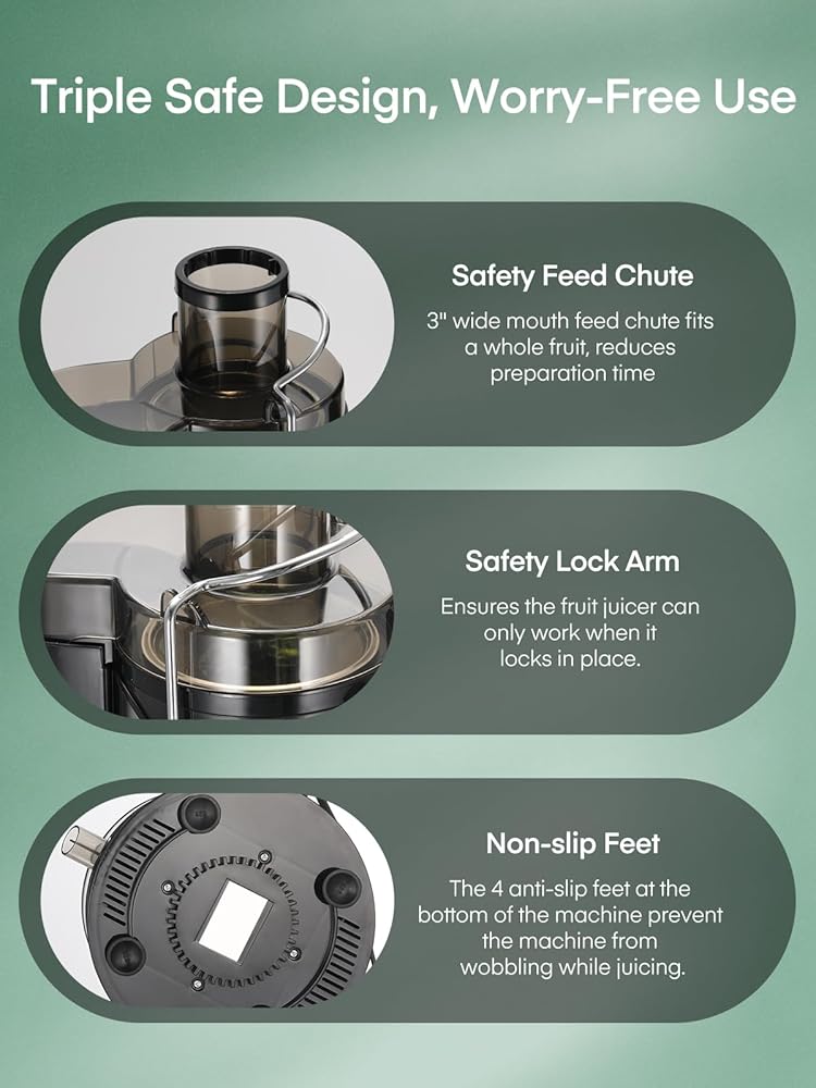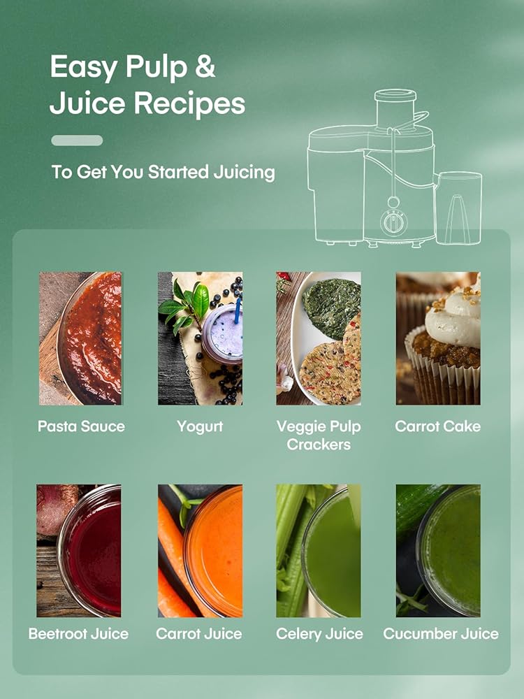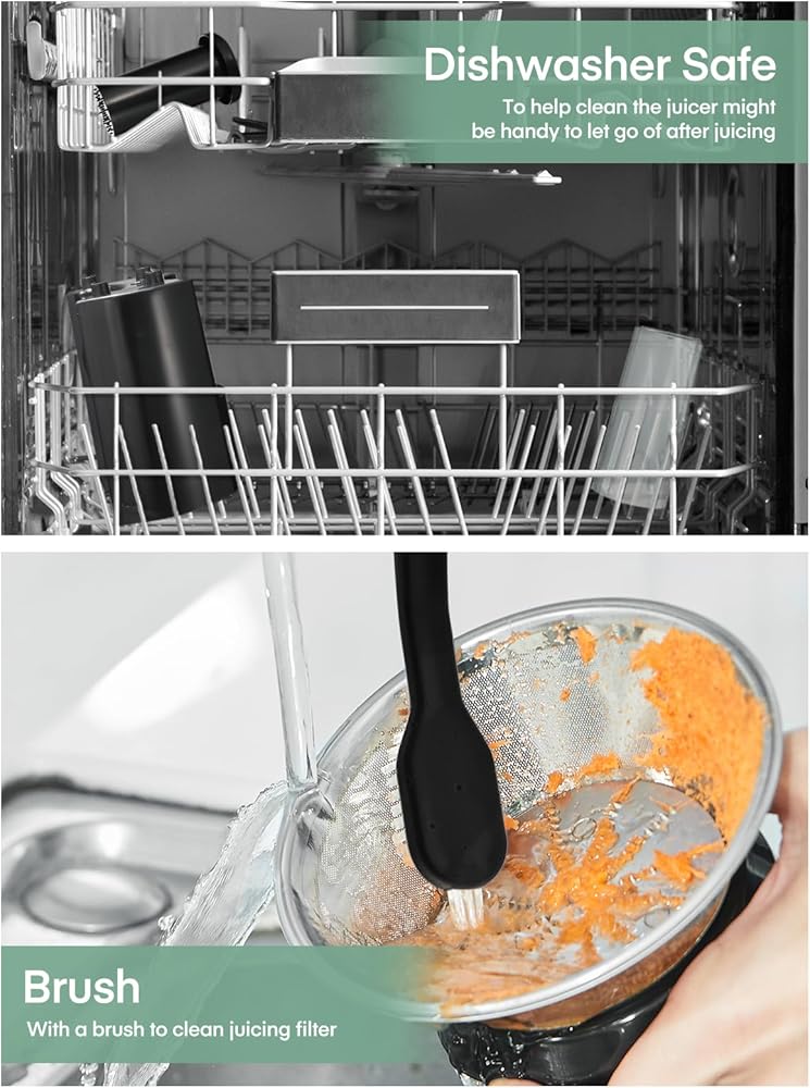 🥕 سهل الاستخدام والتنظيف - آمن للاستخدام في غسالة الأطباق ويحتوي على فرشاة لتنظيف الفلتر. اقضي وقتًا أقل في التنظيف ووقتًا أطول للاستمتاع بعصيرك اللذيذ. ميزات أمان مدمجة مثل الحماية من الحرارة الزائدة، وإيقاف التشغيل التلقائي، والمزيد لإبقاء عقلك مرتاحًا. جميع الأجزاء سهلة التجميع والتفكيك.