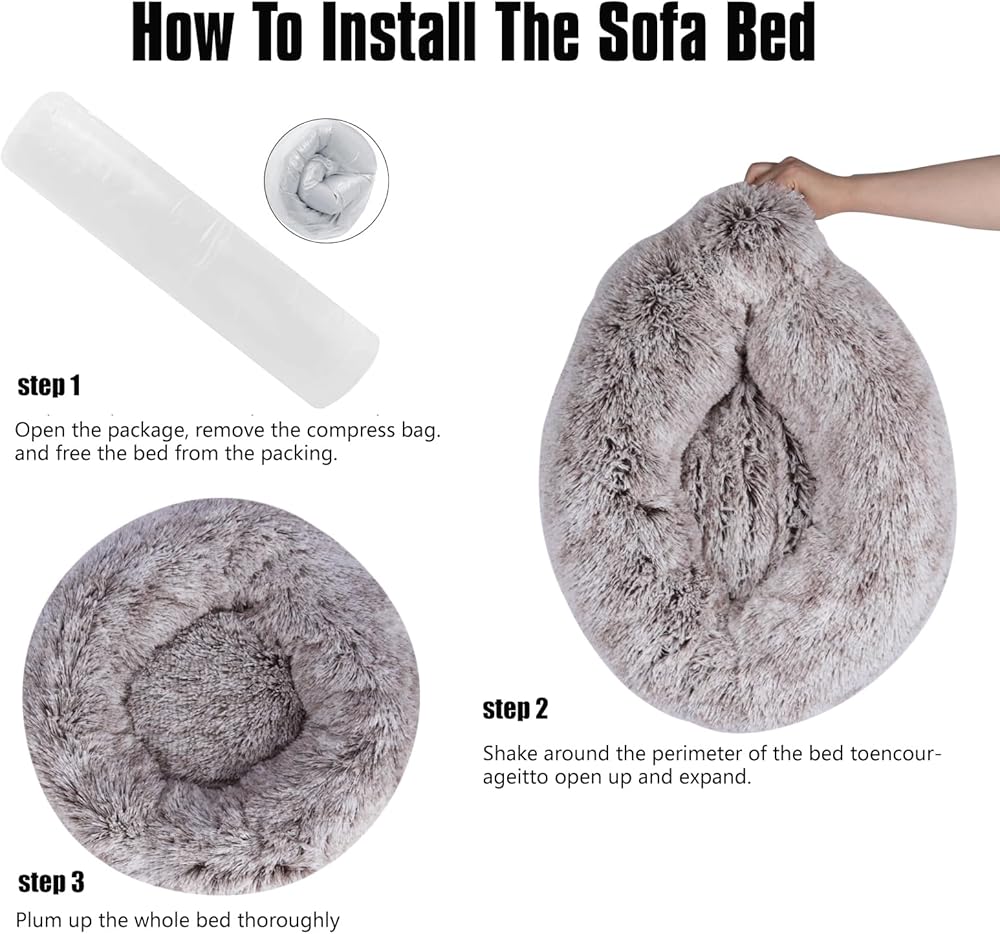 [سهل التنظيف] يمكن غسل سرير الكلب المنفوش في الغسالة. ما عليك سوى وضع سرير القطط والكلاب بالكامل في الغسالة وتجفيفه على درجة حرارة منخفضة بعد الغسيل. سوف يستعيد كلبك سريرًا أكثر نعومة ومتانة. ملاحظة: يرجى تركه بعد 48 ساعة من استلام سرير القطط والكلاب المهدئ، وسيعود إلى شكله بعد هزه.