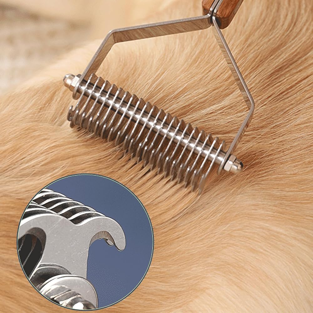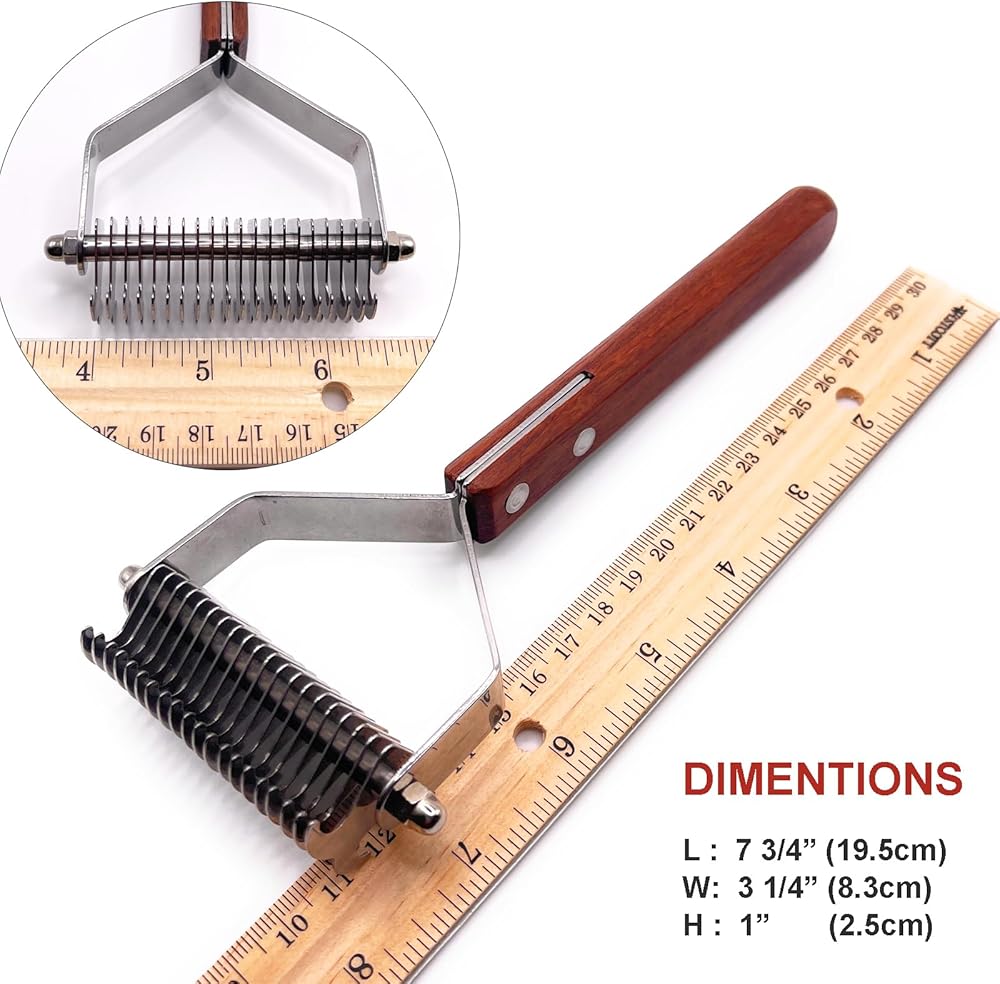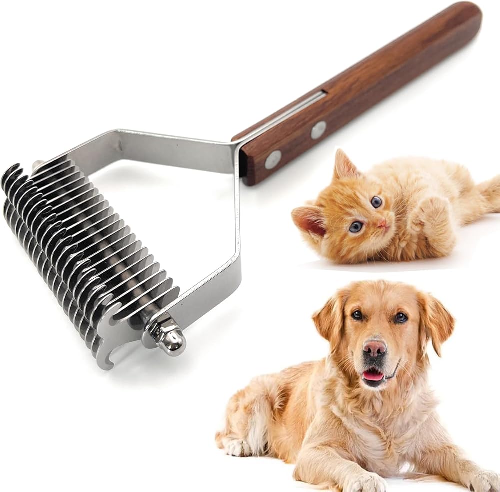 DOUBLE-WIDE PET DEMATTING TOOL - Achieve a professional-looking groomed look for dogs and cats with this DaylyFav 20 blake double-wide dematting undercoat grooming rake stripper tool.