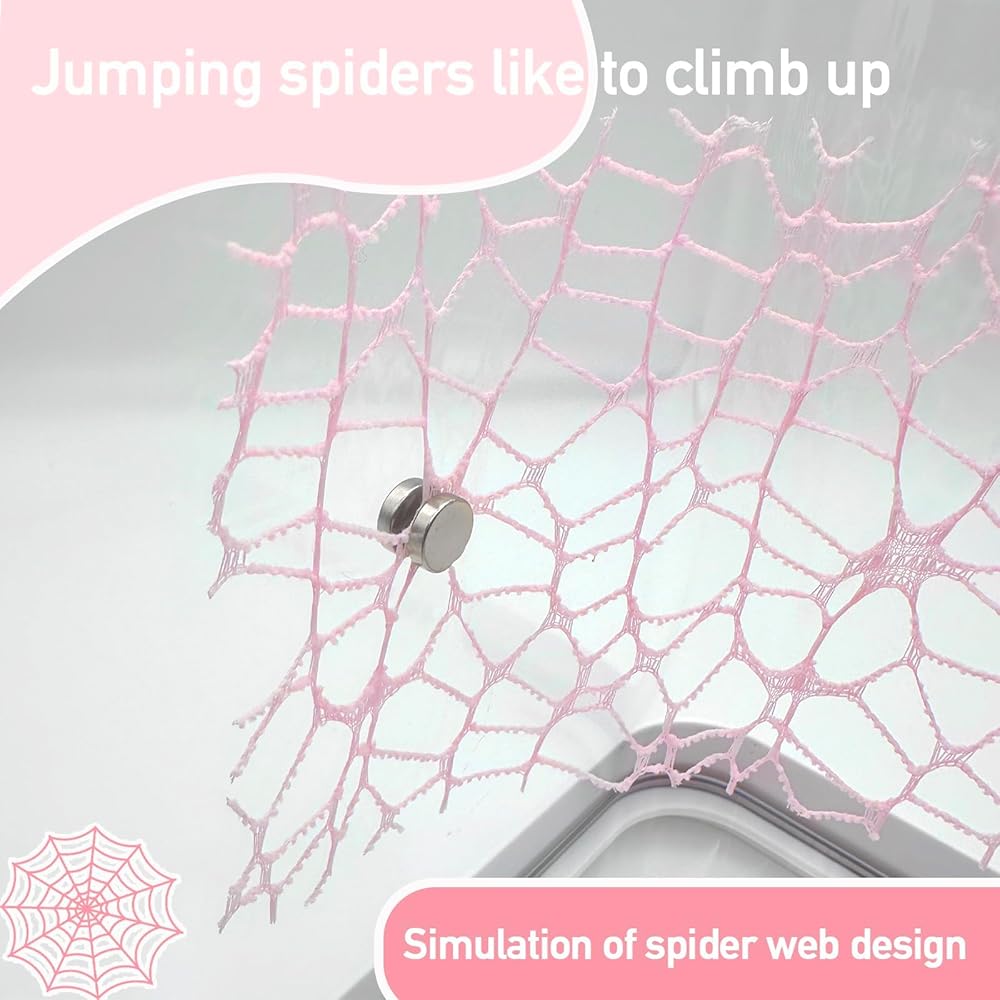 • سهلة التركيب: تحتوي كل مجموعة من ملحقات حاوية العنكبوت القفز لدينا على 4 قطع من شبكة التسلق و8 مشابك مغناطيسية قوية. تسمح المشابك المغناطيسية بسهولة الوضع وإعادة الوضع، مما يتيح لك إنشاء عوائق تسلق إضافية وتخصيص موطن حيوانك الأليف.