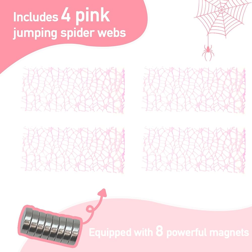 4 قطع من ملحقات موئل العنكبوت القافز - ملحقات العنكبوت القافز مع مغناطيس، عزز منزل العنكبوت القافز الخاص بك مع ديكور عملي وأنيق لحاوية العنكبوت، وردي