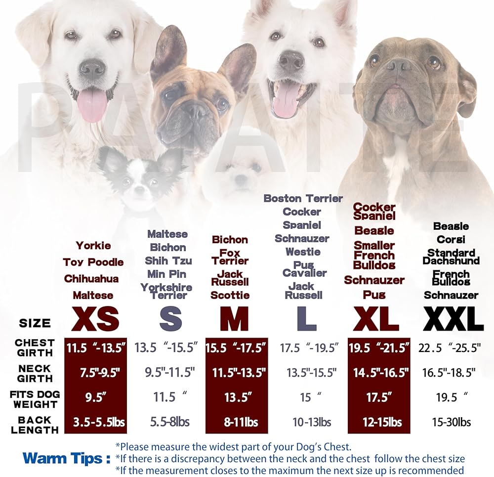 الأحجام: السترة ذات القلنسوة متوفرة بمقاسات مختلفة لتناسب الكلاب الصغيرة والمتوسطة الحجم. تأكد من قياس محيط صدر ورقبة كلبك قبل الشراء لضمان أفضل ملاءمة. يمكن أن يساعدك مخطط الحجم في إرشادك في اختيار الحجم المناسب لجروك.