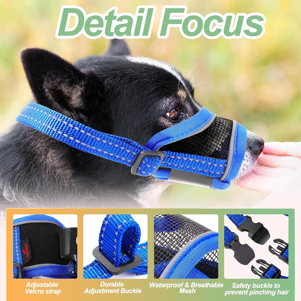 【تصميم فائق الإنسانية】: تستخدم كمامة الكلاب من Xiebebros شبكة ناعمة ومسامية ومقاومة للماء تحمي أنف كلبك من الاحتكاك. كمامة الكلب تستخدم مشبكًا مضادًا للقرص، والذي يمكن أن يحمي فراء كلبك جيدًا. تصميم الفيلكرو العالمي يمكن أن يناسب فم كلبك جيدًا.