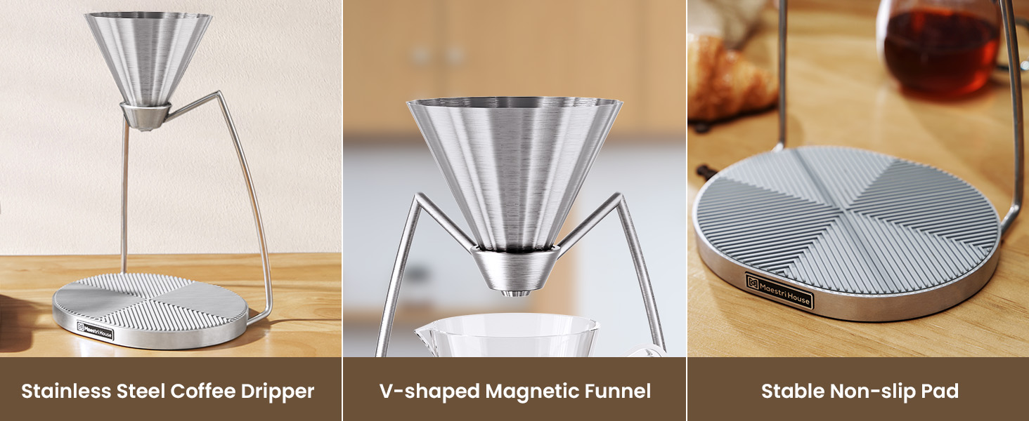【منقط قهوة مغناطيسي فريد من نوعه 】على عكس ماكينات صنع القهوة التقليدية، فإن ماكينة مايستري هاوس بور أوفر للقهوة تحتوي على قطارة قهوة مغناطيسية فريدة تجعل التشغيل أسهل للحصول على تجربة تخمير يدوية أفضل.