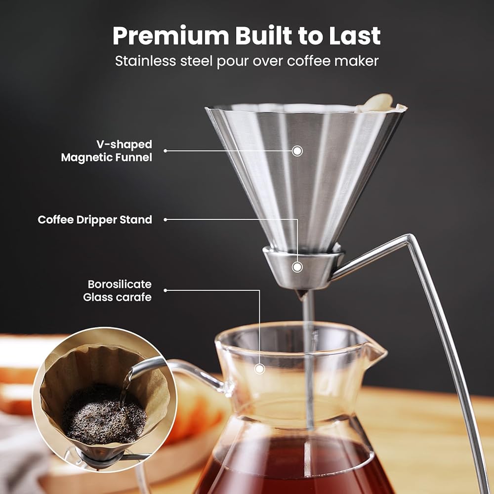 【هدية مرضية】تتميز ماكينة صنع القهوة بور أوفر هذه المصممة جيدًا بتصميم بسيط وأنيق، وسهلة التشغيل وآمنة، وهي مثالية للاستخدام في المنزل والمكتب وفي الهواء الطلق، وهي اختيار جيد للهدايا لمحبي القهوة أو الأصدقاء والعائلة.