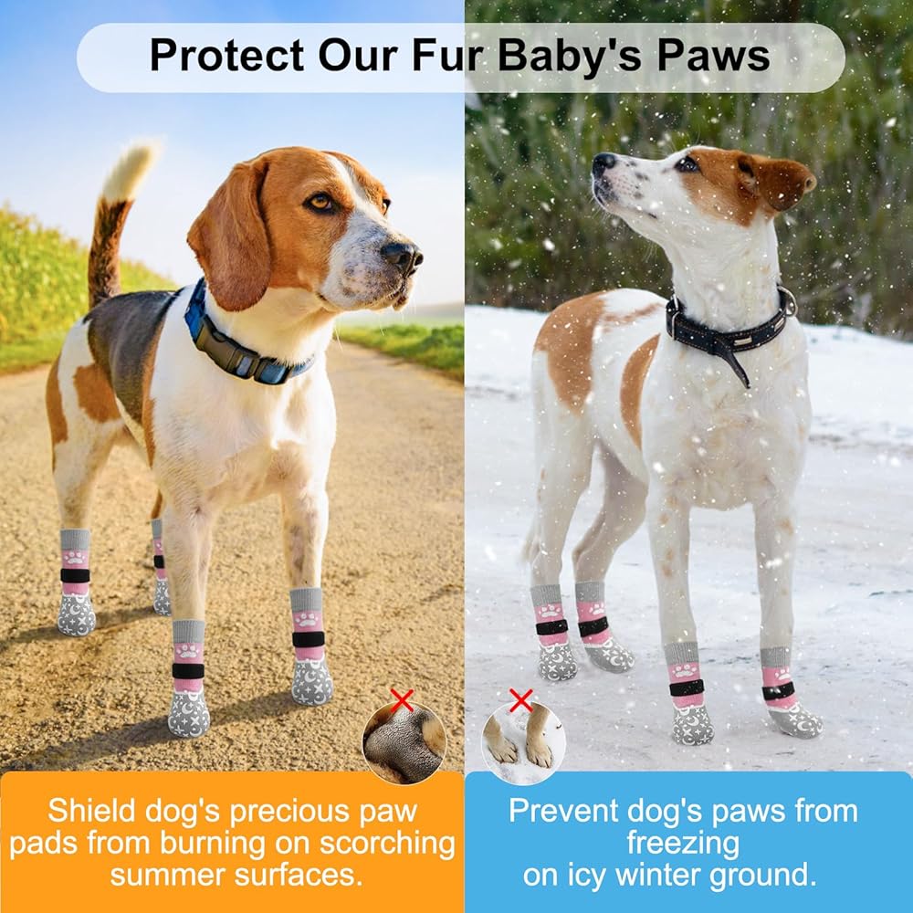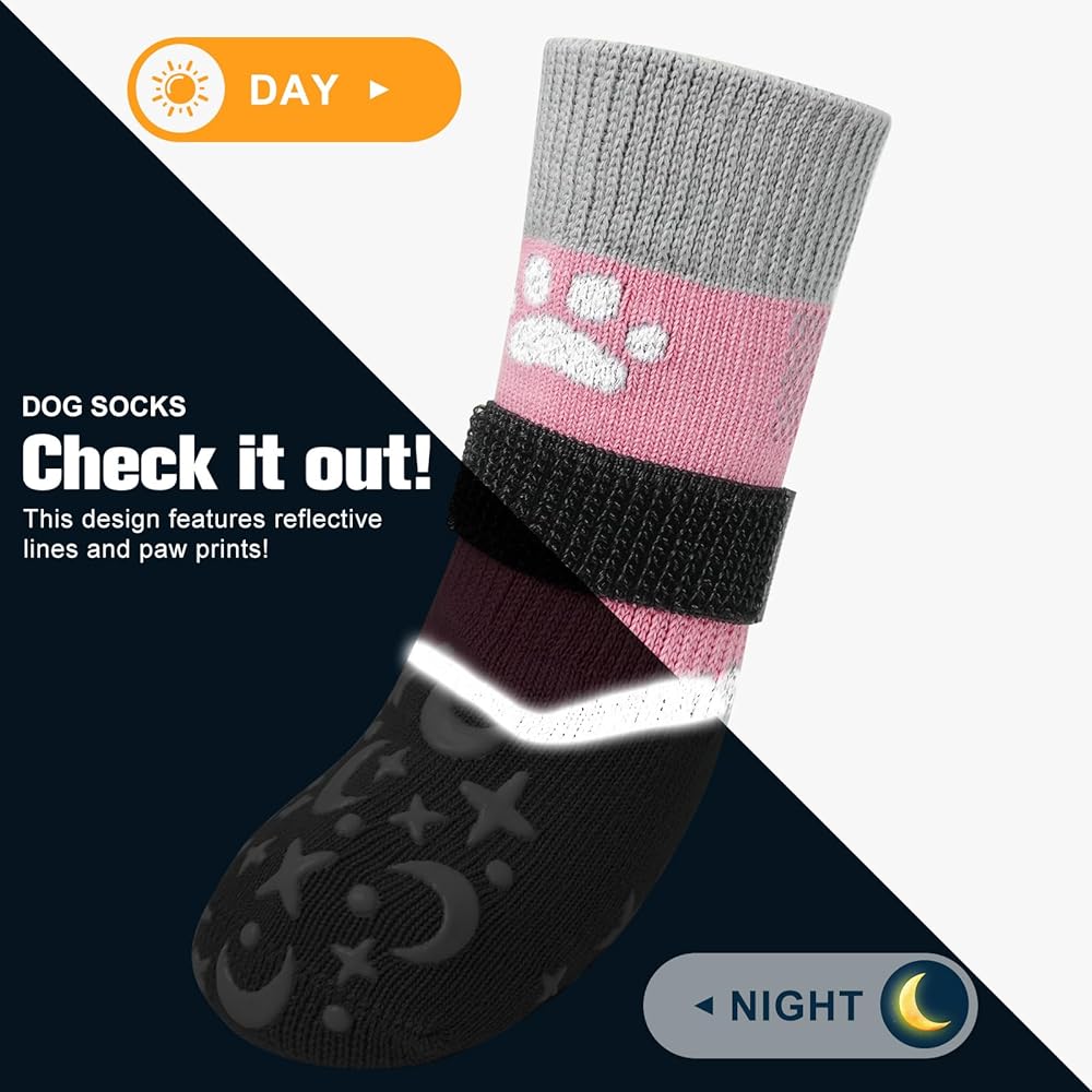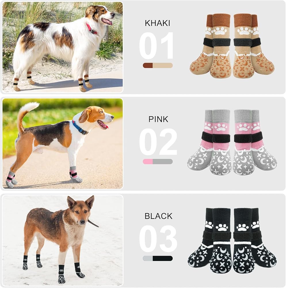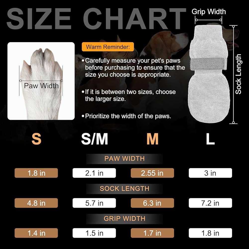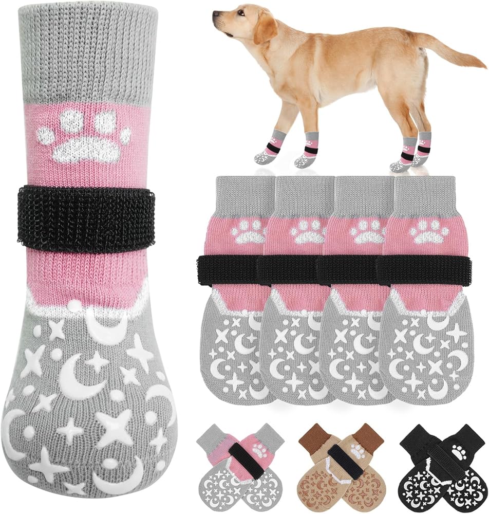 غير قابلة للانزلاق: بالنسبة للأرضيات الصلبة، إذا كان طفلك يعاني من مشاكل في اللعب والاستمرار في الانزلاق على الأرضيات الخشبية بأرجل خلفية، نقترح عليك شراء هذه النعال التي تحتوي على لاصق مضاد للانزلاق، والذي يمكن أن يوفر المزيد من الاحتكاك. بالإضافة إلى ذلك، فإن ارتداء جورب غير قابل للانزلاق يمنع الكلاب من لعق الجرح وتهيجه، مما يساعد في شفاء جروح القدم.