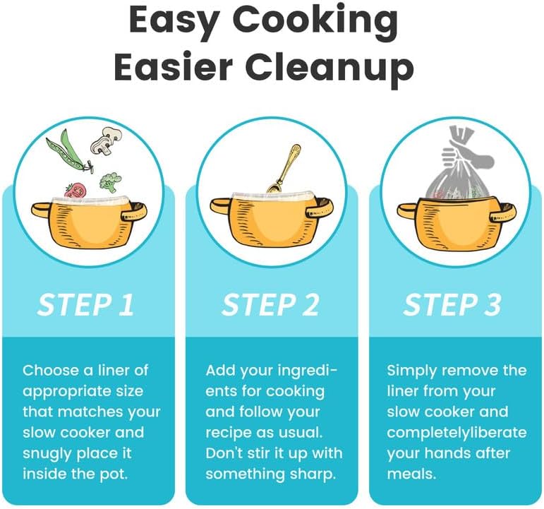 【صحية وآمنة】مصممة للاستخدام الفردي لمنع بقايا الطعام من تلويث جهاز الطبخ البطيء. مصنوعة من مواد صالحة للطعام، مما يضمن عدم التلوث. مثالية للطهي أو التخزين أو نقل الطعام، مما يوفر حماية موثوقة.