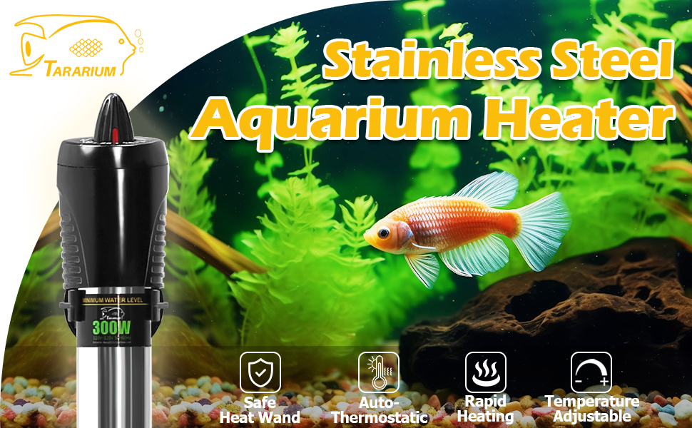 سخان حوض السمك TARARIUM لخزان الأسماك سعة 25-75 جالون من الفولاذ المقاوم للصدأ، ملحقات لوازم حوض السمك للاستخدام في المياه العذبة فقط