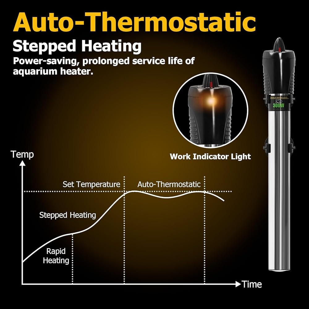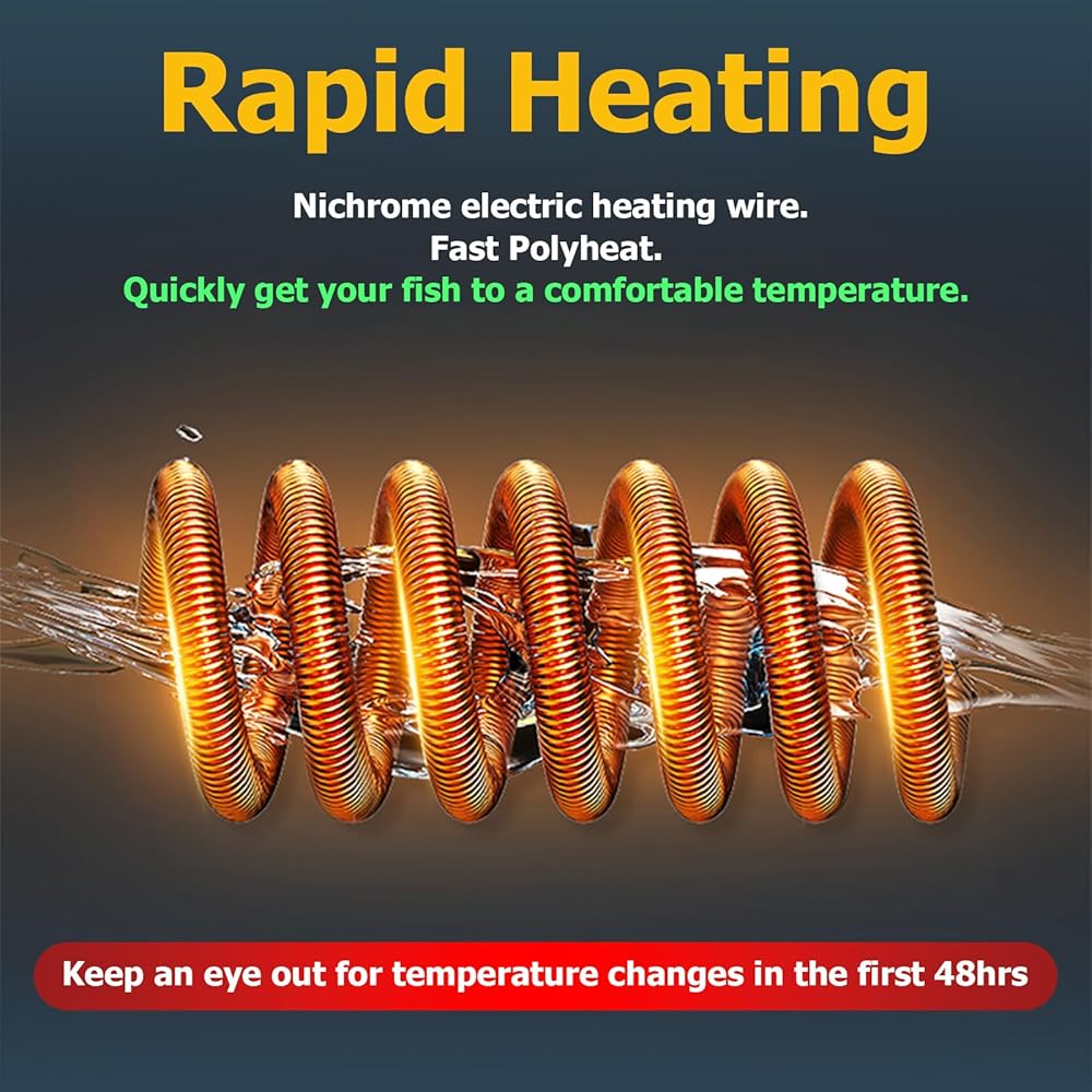• ✅【جعل السمكة مريحة بسرعة】قل وداعًا لانتظار تسخين الخزان. تم تصميم سخان حوض السمك الخاص بنا ليسخن بسرعة نسبيًا، مما يجعل أسماكك وسلاحفك تصل إلى درجة حرارة مريحة في وقت قصير.