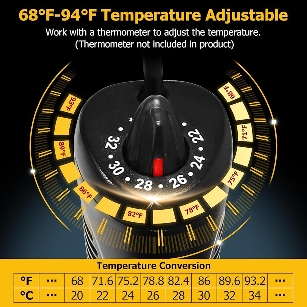 • ✅【سخان حوض السمك بقدرة 300 واط】 قم بإنشاء بيئة مريحة لأصدقائك المائيين باستخدام سخان حوض السمك بقدرة 300 واط. مصمم خصيصًا لأحواض السمك التي تتراوح سعتها من 25 إلى 75 جالونًا، يضمن هذا السخان عالي الجودة درجة حرارة الماء المثالية للأسماك والسلاحف. قل وداعًا للمياه الباردة ومرحبًا بموطن مريح!