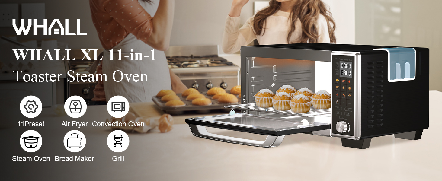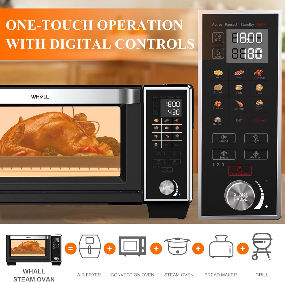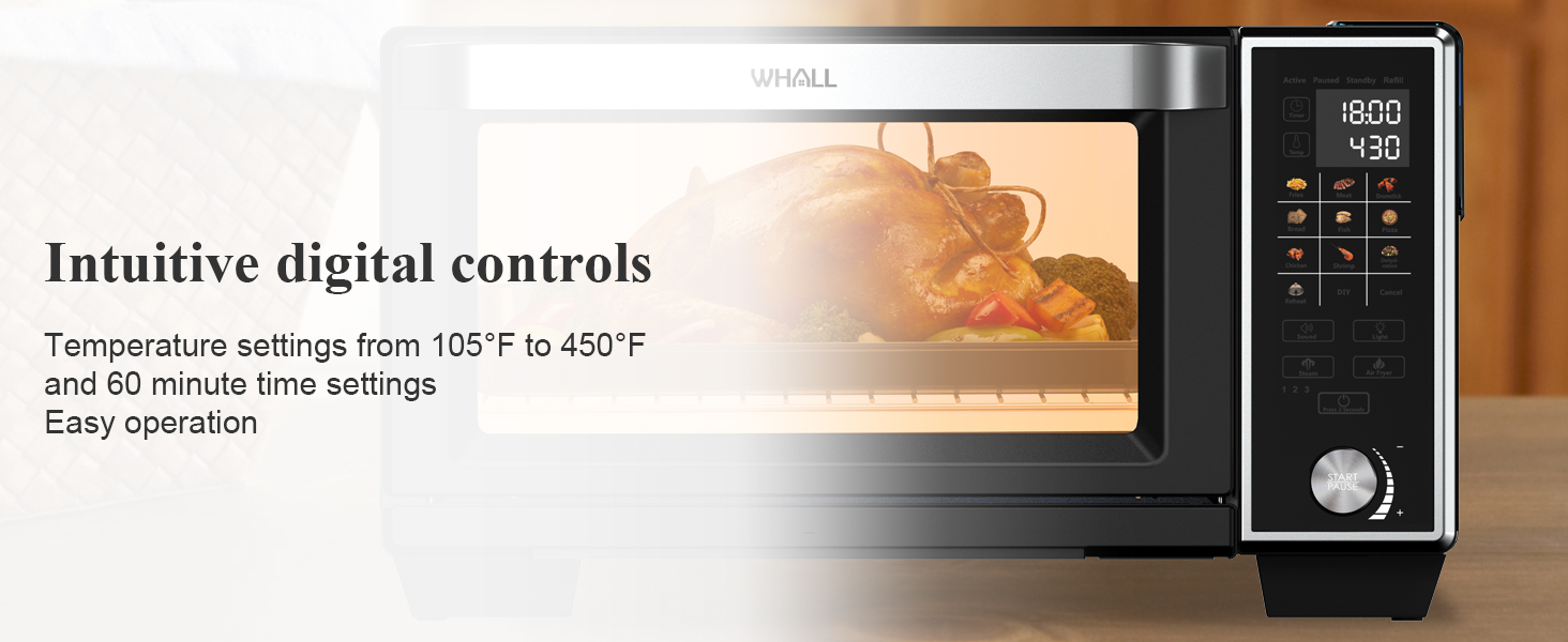 • 【11 إعدادًا مسبقًا للطهي ووظائف خاصة】تم برمجة فرن المقلاة الهوائية WHALL (أسود) مع 11 خيارًا للطهي مسبقًا، بما في ذلك البطاطس المقلية واللحوم والدجاج والخبز والأسماك والبيتزا وإعادة التسخين والمزيد. تم تجهيز هذه المقلاة الهوائية الذكية بوظائف الحمل الحراري والبخار، وكلها معروضة على شاشة LED واضحة للطهي الآمن والسهل. تعمل وظيفة البخار القوية على تحسين طراوة الطعام، حيث توفر 3 مستويات لاستيعاب الأذواق المختلفة.