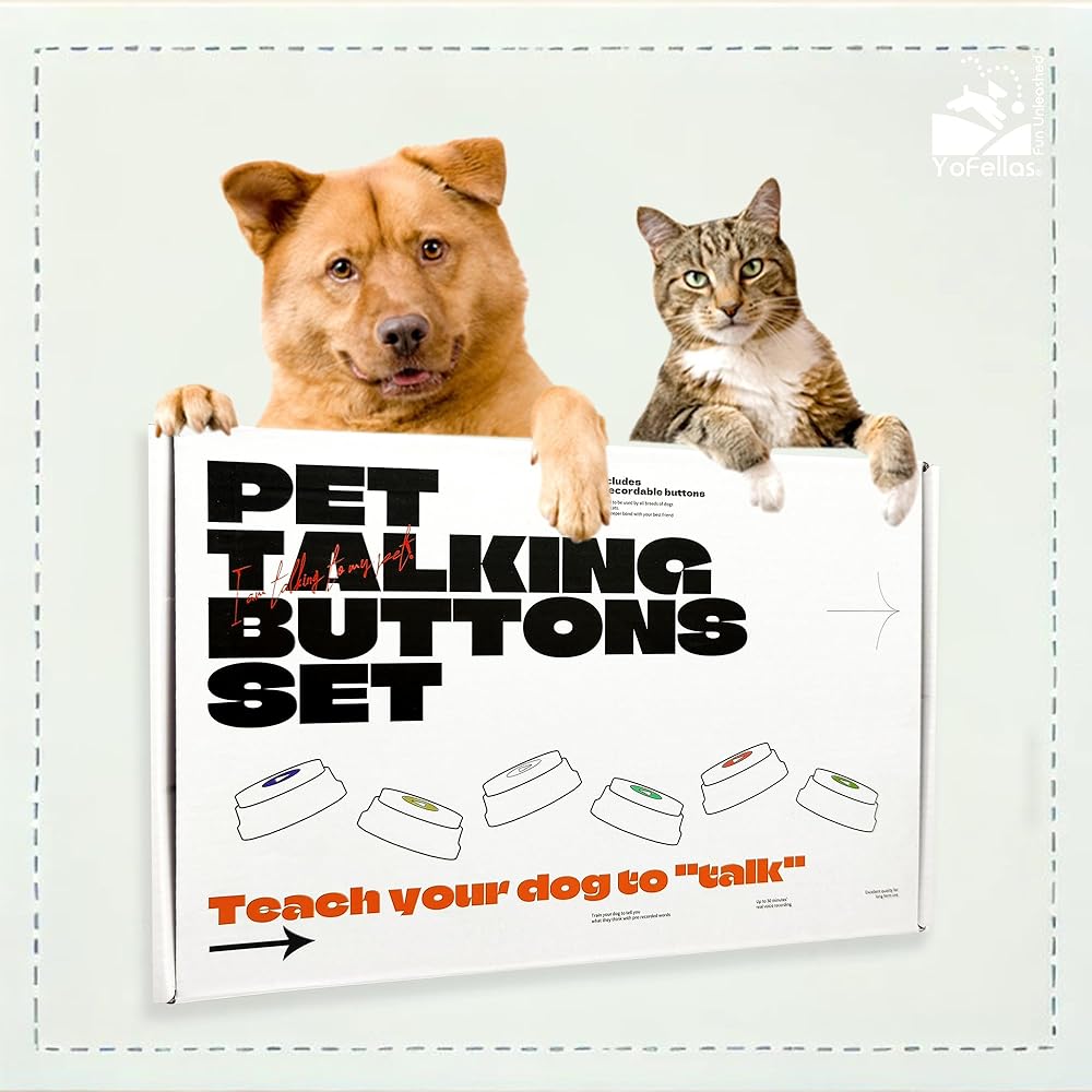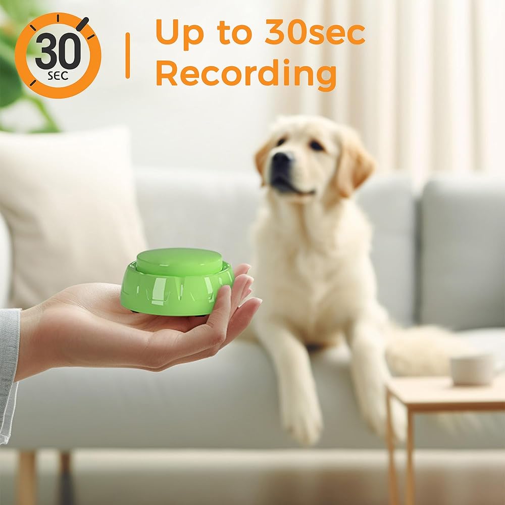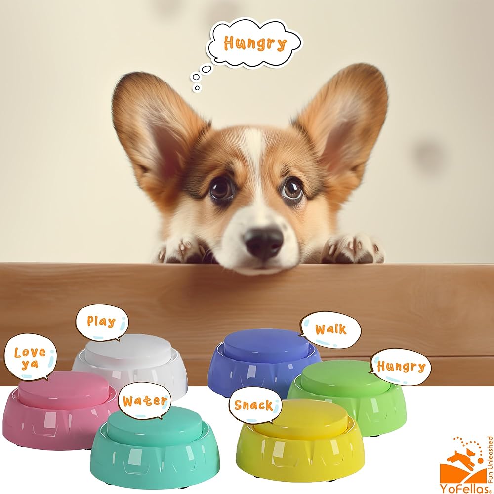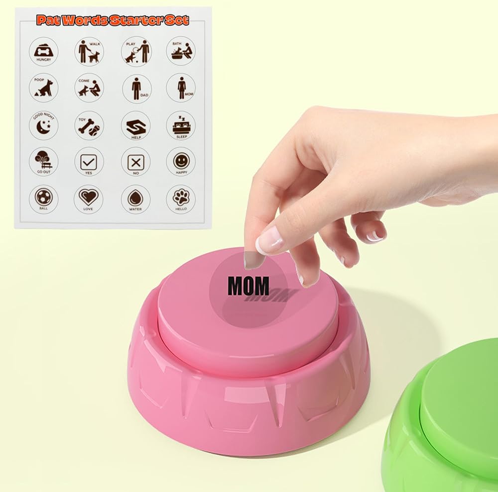 Give your pet the gift of communication with the Pet Communicator Button 6 Pack, an innovative tool designed to enhance the way you and your furry friend interact. This set of six colorful buttons allows you to record customizable voice messages, making it easier for your pet to express their needs and emotions. Crafted from durable, pet-safe materials, our buttons are built to withstand daily use while ensuring your pet's safety. Each button features a non-slip base for stable interaction, and the vibrant colors (white, yellow, green, blue, pink, teal) make it easy for pets to distinguish between different commands. Whether you're teaching your dog to say "food," "outside," "play," or "love you," these buttons provide an engaging and effective way to train and bond with your pet. Powered by 2*AA batteries (not included), the Pet Communicator Button is easy to set up and use, making it a must-have for pet owners looking to take their communication to the next level. Perfect for both dogs and cats, this device is an excellent interactive training tool that stimulates your pet's mind and encourages positive behavior. Join the thousands of satisfied pet owners who have discovered the joy of enhanced communication with their pets. Order your Pet Communicator Button 6 Pack today and give your pet the voice they deserve!