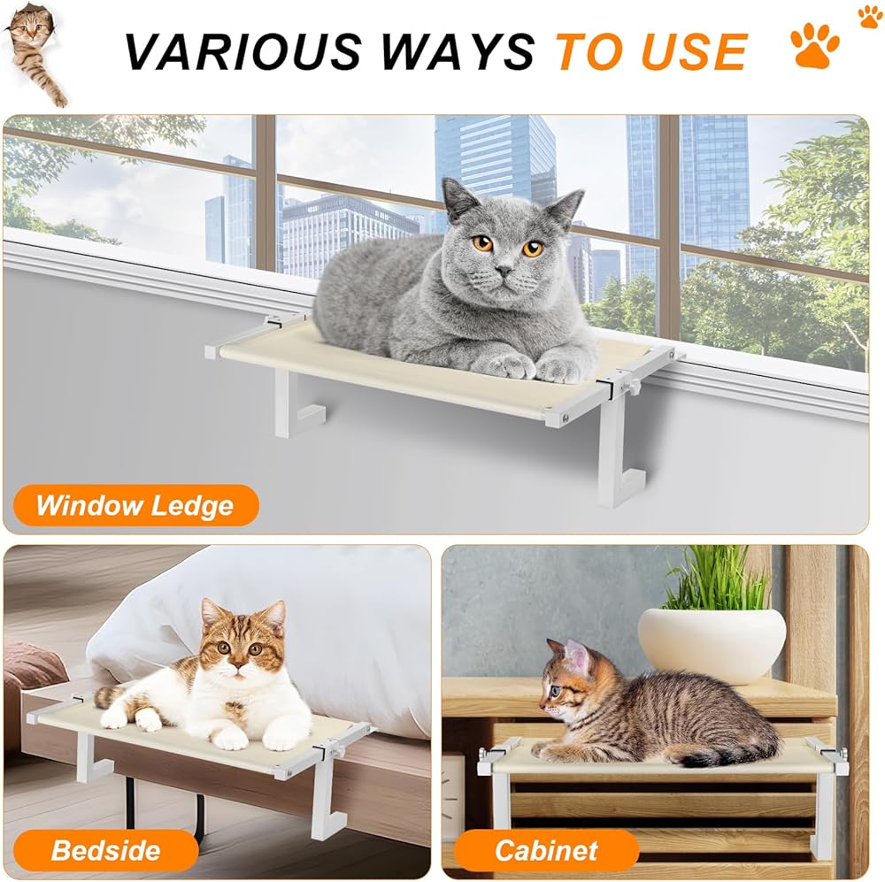 【استخدام واسع】لا يقتصر سرير مجثم القطط الخاص بنا على عتبات النوافذ فحسب، بل يمكن أيضًا وضعه على طاولات الليل، بالإضافة إلى ذلك، يمكن وضعه على الأدراج أو الخزانات، مما يوفر المزيد من الأماكن لترفيه قطتك.