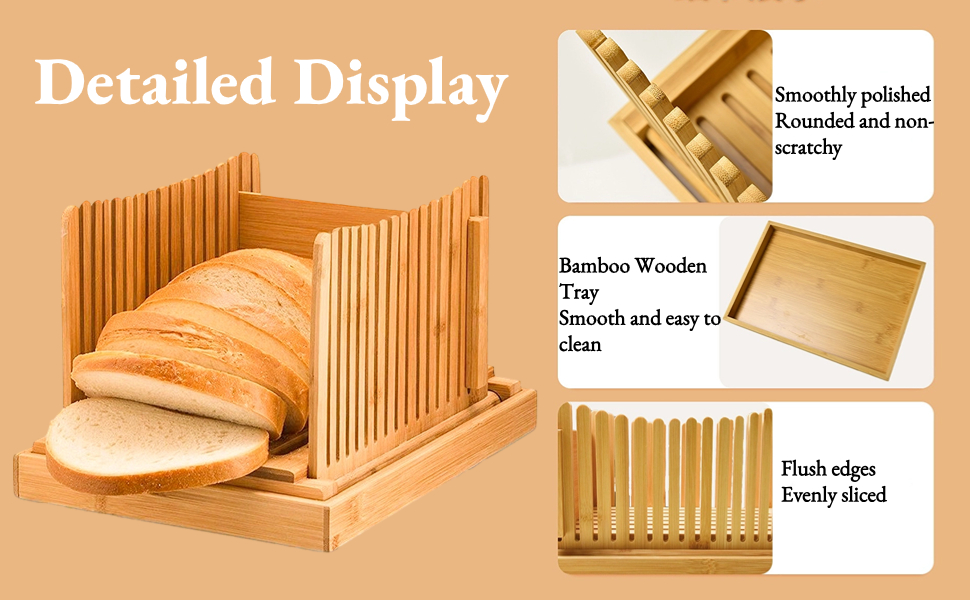 استمتع بالتقطيع بدون مجهود: مع دليل تقطيع خبز الخيزران الخاص بنا، استمتع براحة تصميم الفتحة الكبيرة، مما يجعل من السهل التقاط وتقطيع الخبز المنزلي بالطريقة التي تريدها. قل وداعًا للشرائح غير المستوية وأبهر عائلتك وأصدقائك بقطع متساوية تمامًا في كل مرة.
