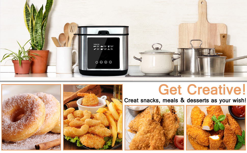 حجم مناسب وقلي سريع: تتميز المقلاة العميقة CUSIMAX بعنصر تسخين قوي بقوة 1200 واط ومجهزة بحاوية زيت سعة 2.6 لتر. تمنحك المقلاة العميقة الكهربائية القدرة على صنع مجموعة متنوعة من الأطعمة المقلية والبطاطا المقلية وحلقات البصل والدجاج المقلي والمزيد مما يجعلها مثالية كأداة طهي إضافية للحفلات وليالي الأفلام والعشاء والتجمعات العائلية.
