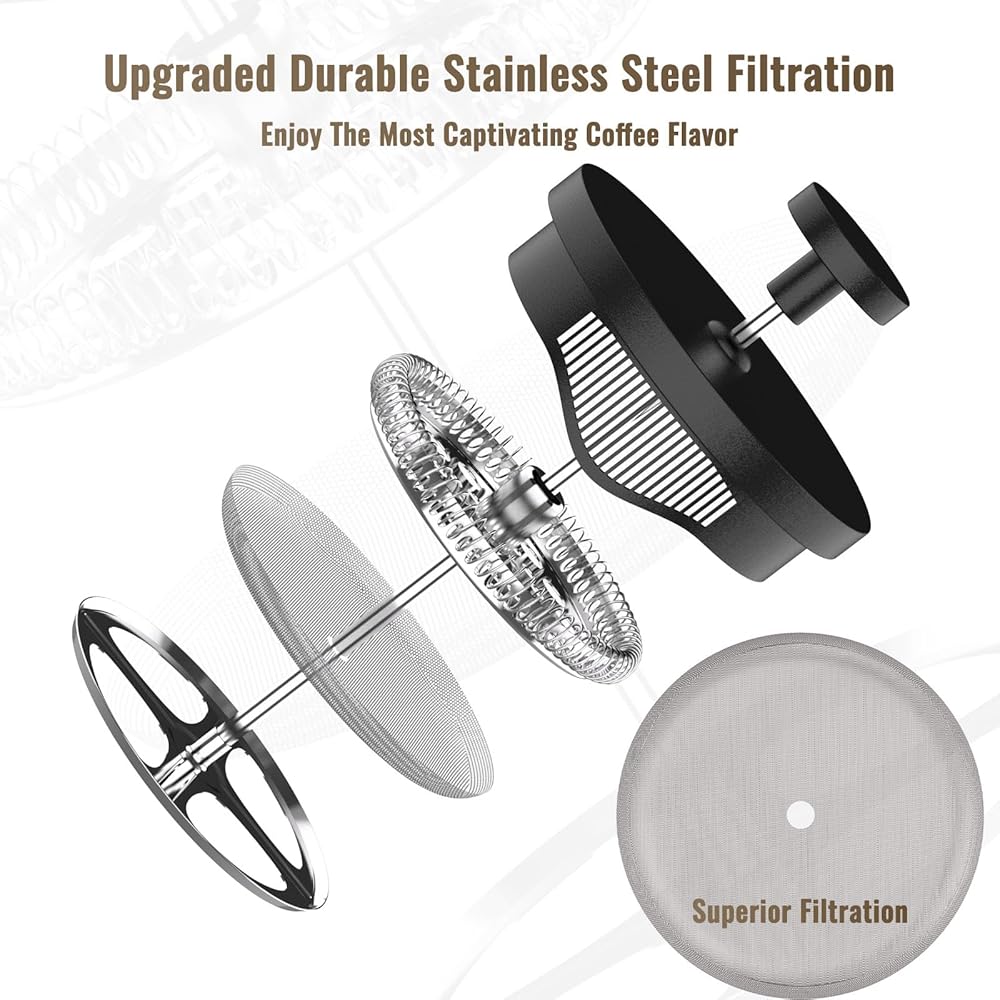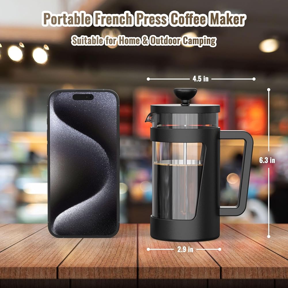 ماكينة ضغط فرنسية صغيرة من راينبين، 12 أونصة، ماكينة صنع القهوة الفرنسية الصغيرة 1 كوب، ماكينة تحضير القهوة لمرة واحدة، ماكينة تحضير القهوة مع 3 مستويات ترشيح، مثالية لمحبي الشاي والقهوة