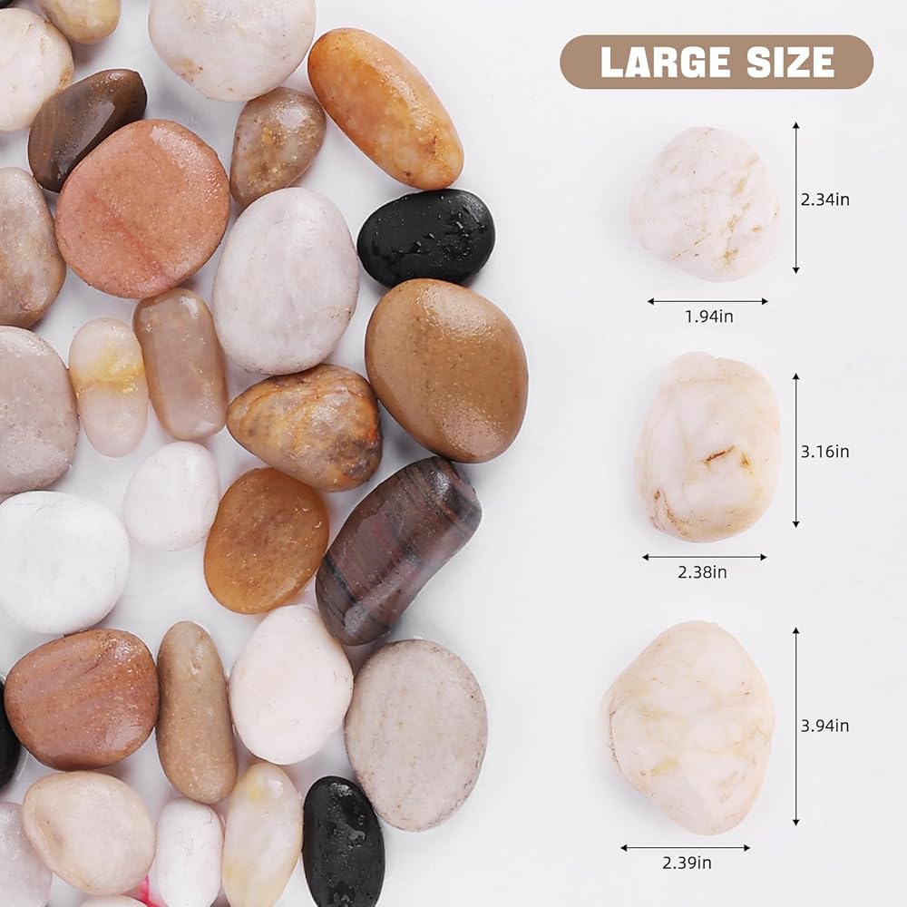 Meet WHANLEY L&Q Enchanted Decorative River Rocks, where nature's artistry comes to life. These charismatic stones each tell a unique story and are ready to bedazzle your surroundings. 1. Timeless Aesthetic Charm: These river rocks are a timeless masterpiece of nature, showcasing earthy hues and radiant sheens that exude elegance and beauty. 2. Dream Playground: These river rocks are your canvas for dreams. Use them to create captivating planters, mesmerizing terrariums, and other artistic projects that reflect your unique vision. 3. Gentle Packaging: Our river rocks are wrapped with care, ensuring they arrive at your door in their full glory, ready to grace your cherished spaces. 4. Join the Satisfied: Become a part of the satisfied customers who've experienced the enchantment of our river rocks, testifying to their quality and boundless potential. 5. Guardians of Beauty: From your cozy living room to your garden's hidden corners, our river rocks bring beauty and personality to every nook and cranny. 6. Support Artistry: By choosing our Decorative River Rocks, you're supporting a local gem from the United States, dedicated to craftsmanship and creativity. 7. Excellent team: Our team is committed to providing customers with excellent products, carefully selecting gemstones of suitable sizes, and consistently maintaining the beauty of nature from the river to your home. Our team is online every day, if you have any questions about the product You can email us immediately and we will usually assist you within 4 hours. We hope you can have a positive experience with our products.