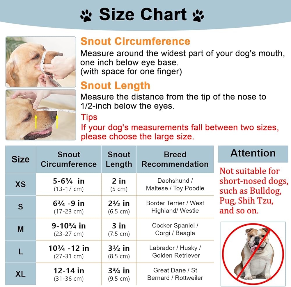 خدمة خالية من المتاعب: نحن نقدم سياسة استبدال لمدة 60 يومًا لراحة بالك. عندما تتلقى الكمامة الخاصة بك، تأكد من أنها كبيرة بما يكفي للسماح لكلبك بأن يلهث وأنها آمنة. يسعدنا أن نحقق عوائد على الكمامات التي هي في حالة جديدة تمامًا. مجرد شراء بثقة.