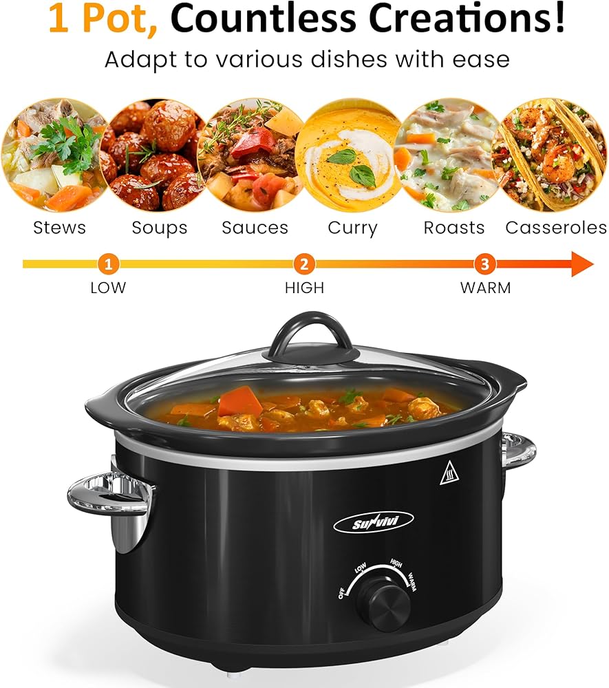 ثلاثة إعدادات للتسخين: مع إعدادات منخفضة وعالية ودافئة، يلبي طباخنا البطيء بسلاسة الخبز أو الطبخ البطيء أو تسخين الطعام. بغض النظر عن وضع درجة الحرارة المحدد، فإننا نضمن درجة الحرارة والرطوبة المثالية للطعام، مما يمنع فقدان الرطوبة ويحافظ على أفضل مذاق.