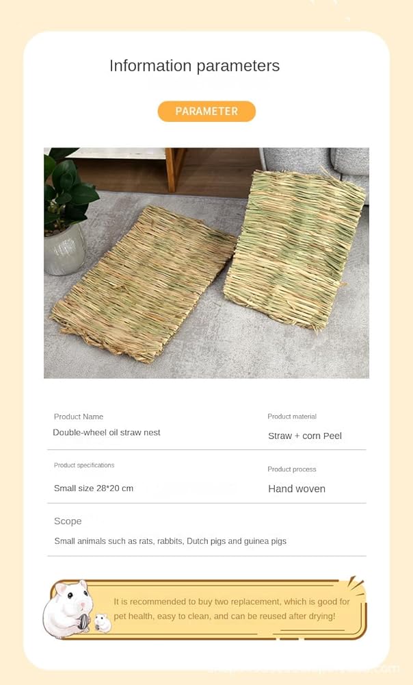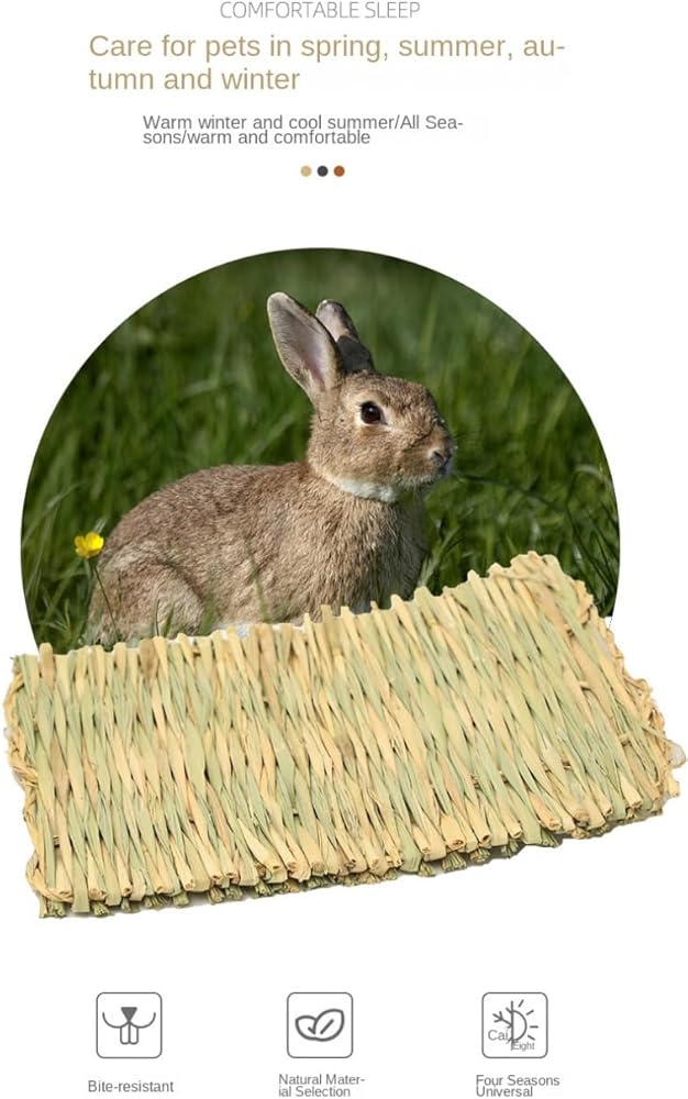 مادة العشب الطبيعية: حصيرة العشب الطبيعية المصنوعة يدويًا من GYMT مصنوعة من العشب الطبيعي النقي ومصممة لتوفير الراحة القصوى لحيواناتك الأليفة الصغيرة.