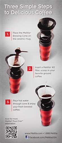 تخمير يدوي سريع وسهل: ماكينة صنع القهوة هذه ذات الكوب الواحد مع الكوب هي الطريقة المثالية لصنع كوب رائع من القهوة الذواقة؛ يشتمل على كوب ومخروط بالإضافة إلى كمية البدء من مرشحات Melitta Number 2 المخروطية