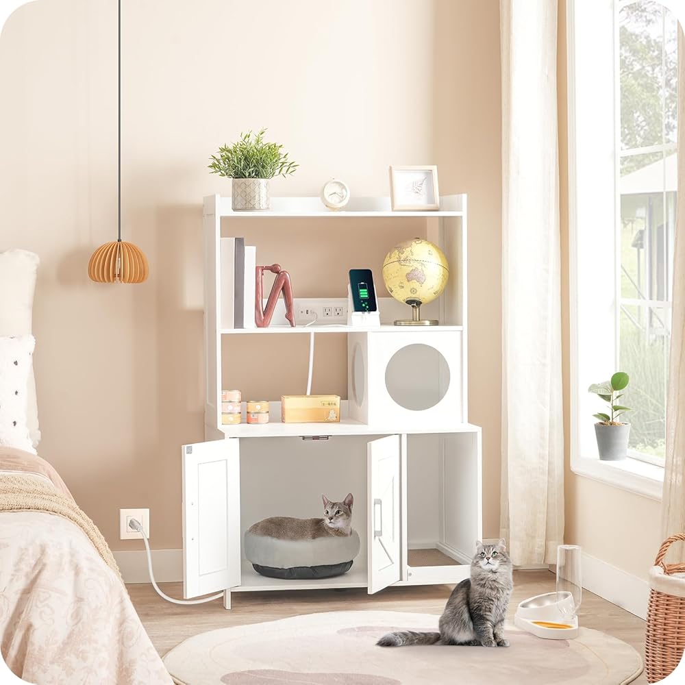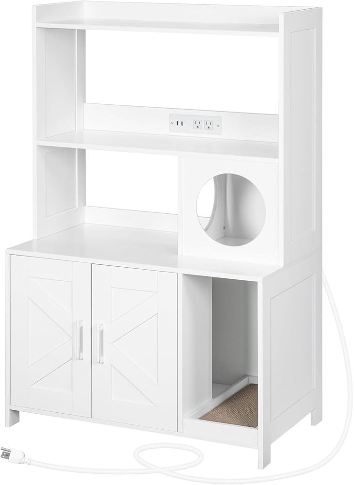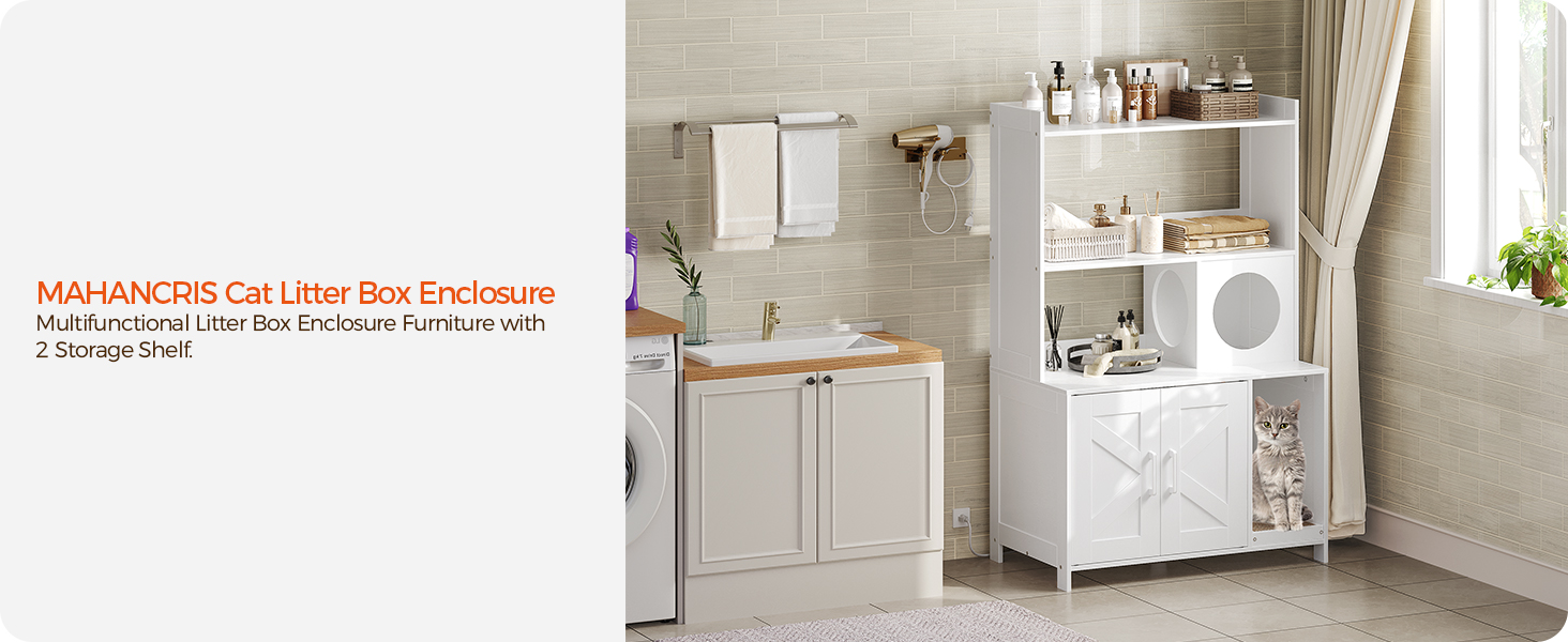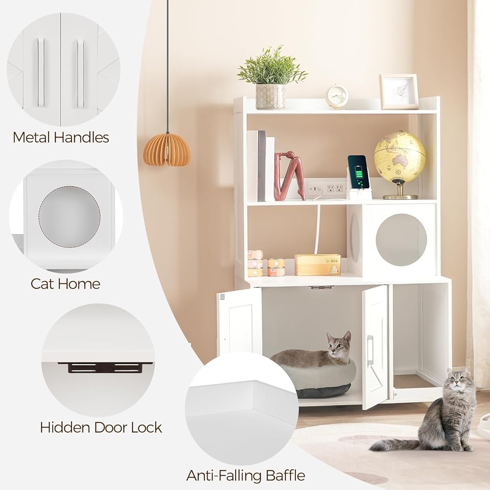 متينة وسهلة التنظيف: خزانة تخزين حمام القطط المتينة هذه مصنوعة من ألواح عالية الجودة مع قدرة تحميل تصل إلى 180 رطلاً. أبواب مزدوجة تسهل التنظيف اليومي وتغيير القمامة. وسادة خدش القطط القابلة للإزالة تمنع إخراج فضلات القطط
