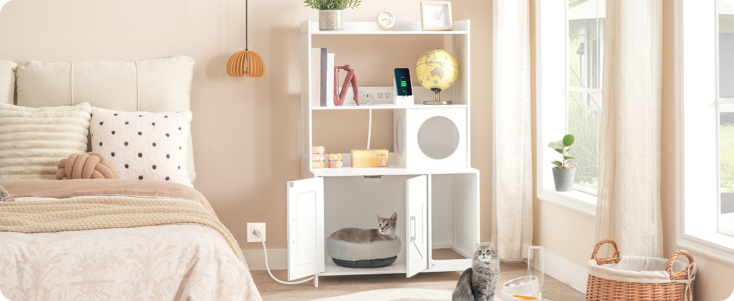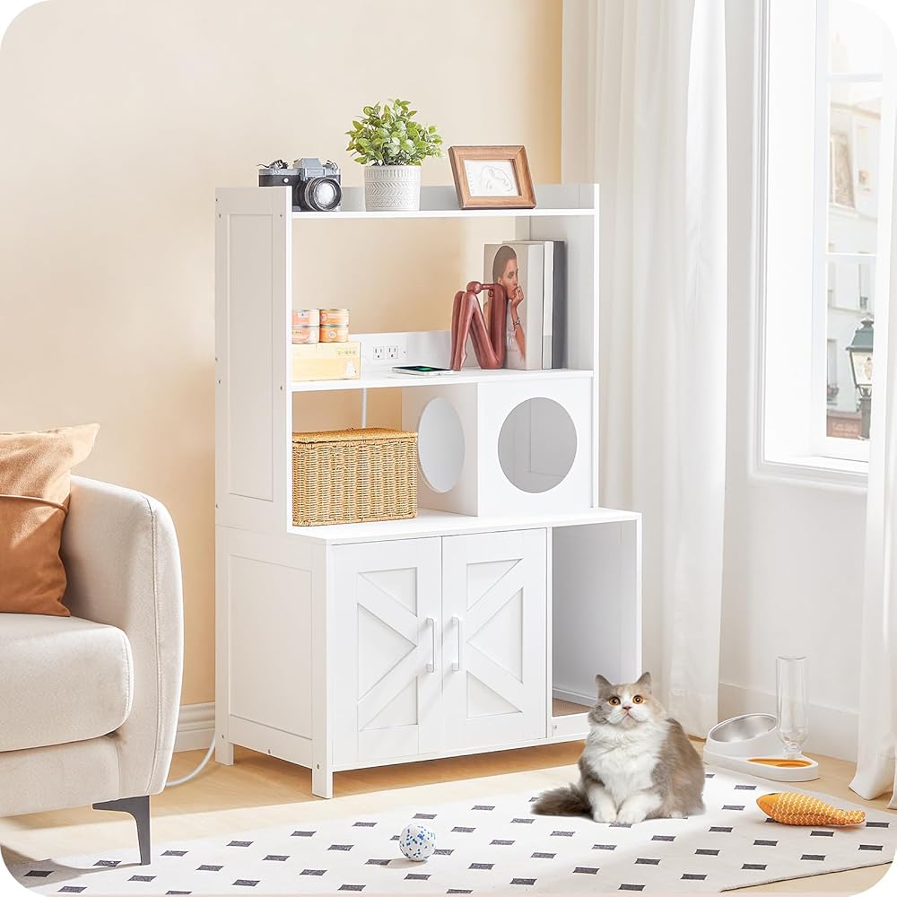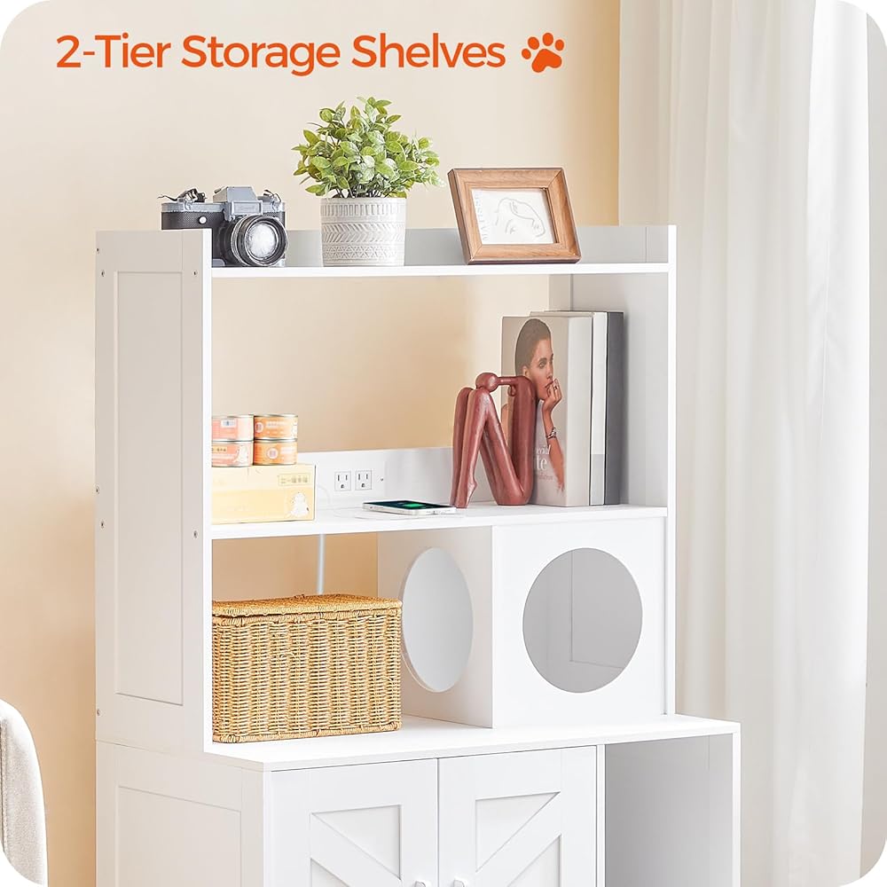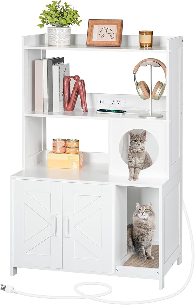 متينة وسهلة التنظيف: خزانة تخزين حمام القطط المتينة هذه مصنوعة من ألواح عالية الجودة مع قدرة تحميل تصل إلى 180 رطلاً. أبواب مزدوجة تسهل التنظيف اليومي وتغيير القمامة. وسادة خدش القطط القابلة للإزالة تمنع إخراج فضلات القطط