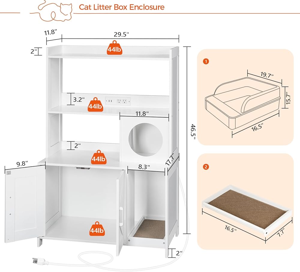جنة القطط: يبلغ حجم الأثاث المغلق لصندوق الفضلات هذا 29.5 بوصة طولًا × 17.7 بوصة عرضًا × 46.5 بوصة ارتفاعًا، وهو مناسب لمعظم أحواض فضلات القطط، مع بيت علوي للقطط للعب القطط وخزانة صندوق فضلات مخفية سفلية لراحة القطط، مما يجعلها مكانًا مريحًا للقطط. مكان ترفيهي رائع لحيوانك الأليف