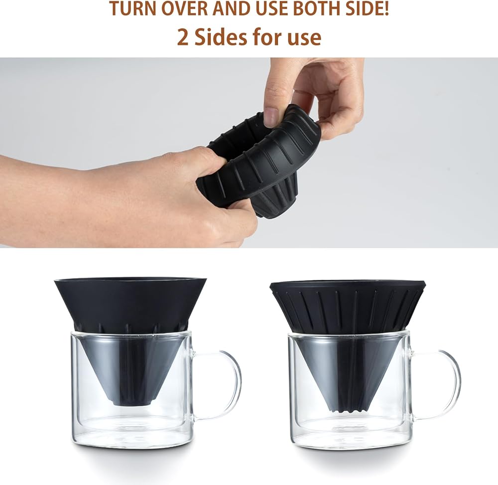 Reusable silicon coffee filter is suitable for home, camping backpacking, outdoors, travelling, RV, office or anywhere you want to drink a freshness cup of coffee.