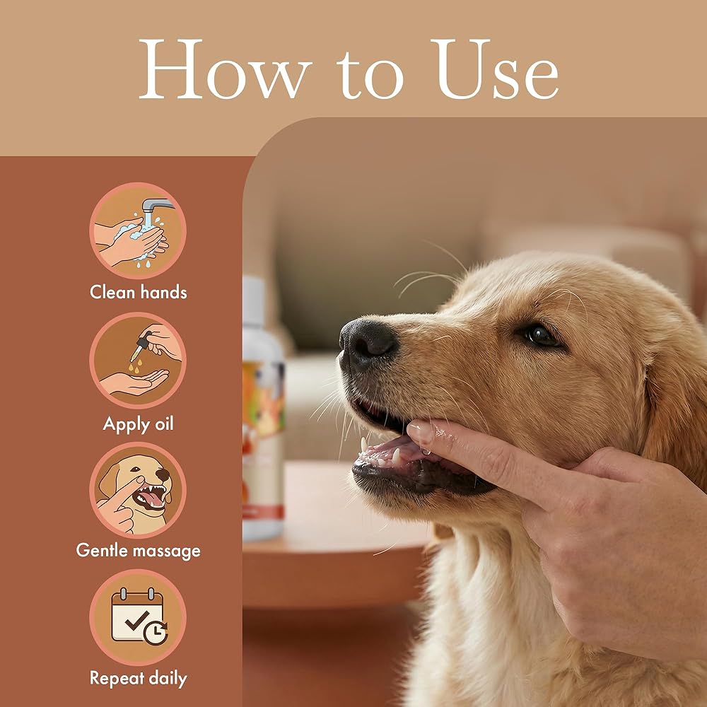 To use, simply massage the oil gently onto the affected gums with clean fingers or a cotton swab as often as needed. Because our formula contains no medications and has such low essential oil content, there is no risk of overdose.