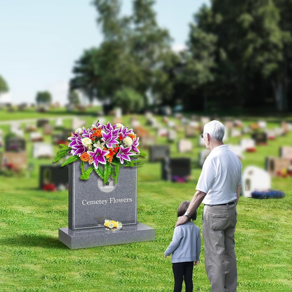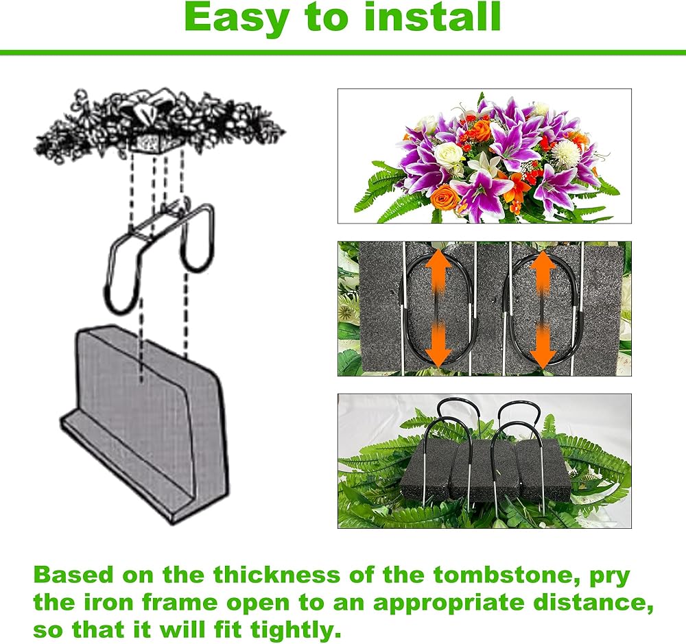 - 【𝐔𝐧𝐢𝐯𝐞𝐫𝐬𝐚𝐥 𝐟𝐢𝐭】Cemetery flowers for graves are designed to fit most standard headstones with a thickness of 3-7 inches.