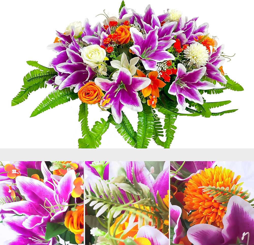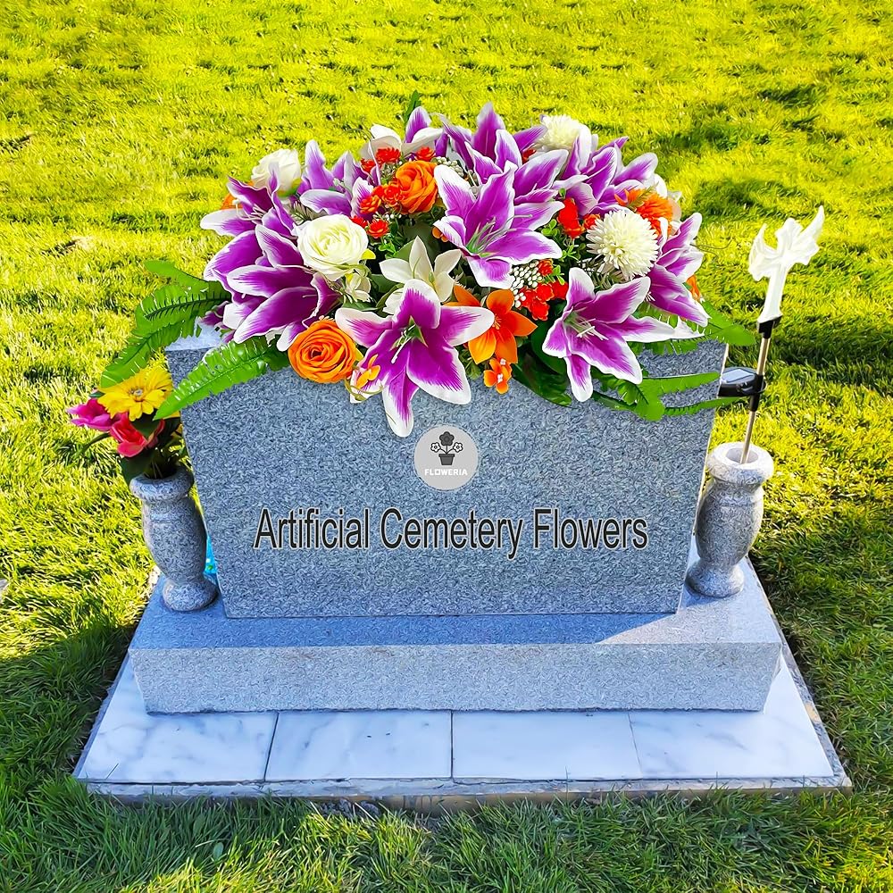 ديكورات زهرة مقبرة التعاطف للمقابر الوردة الاصطناعية ، سرج زنبق لقبر القبر ، الحجم الكبير الطويل الأمد وسهولة السهولة