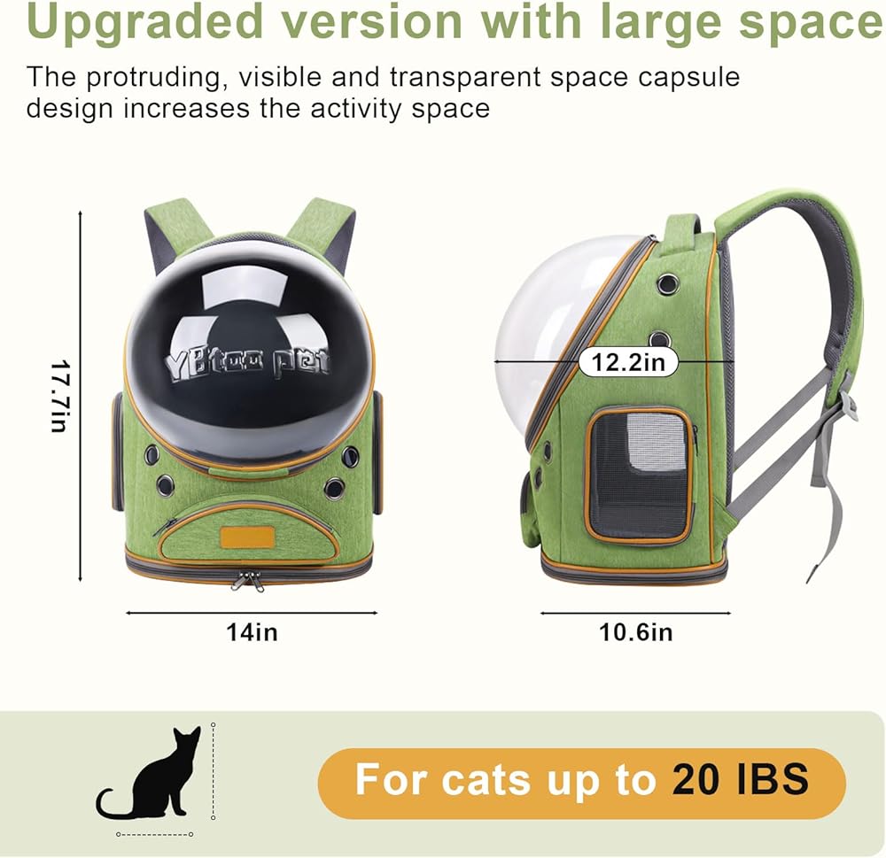 • حقيبة ظهر لحمل الحيوانات الأليفة - يبلغ حجم حاملة حقيبة الظهر للقطط 17.7 بوصة طولًا × 13.7 بوصة عرضًا × 9.1 بوصة ارتفاعًا. مناسبة للحيوانات التي يصل وزنها إلى 15 رطلاً. يوفر الغلاف الشفاف لحقيبة ظهر القطط مساحة آمنة لحيوانك الأليف مع إبقائه على علم تام بوجوده. المناطق المحيطة