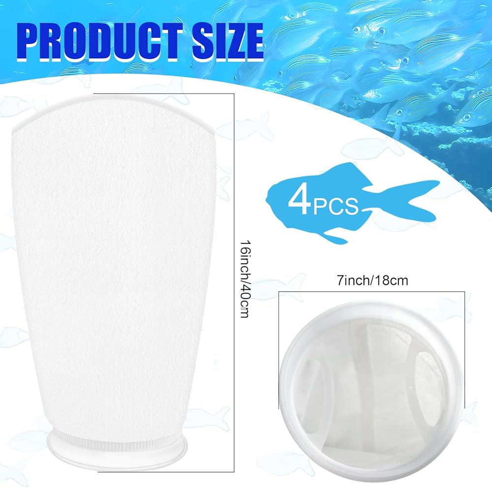 • 𝐖𝐡𝐚𝐭 𝐖𝐢𝐥𝐥 𝐘𝐨𝐮 𝐑𝐞𝐜𝐞𝐢𝐯𝐞? : Package includes 4 pcs water filter sock, the filter sock ring is 7inch wide, and the filter sock is 16inch long.Use our Aquarium Felt Filter Bags to provide a healthy and clean environment for your aquatic pets.