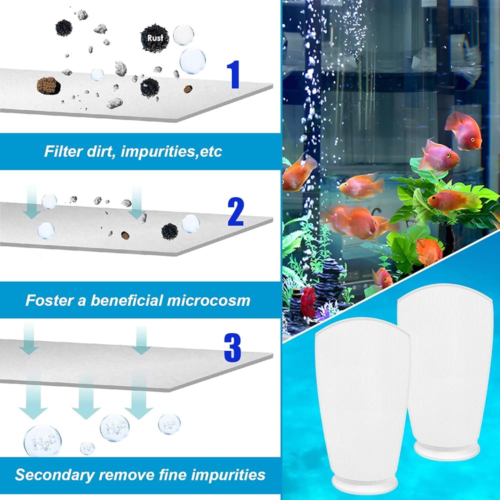 • 𝐇𝐚𝐩𝐩𝐲 & 𝐇𝐞𝐚𝐥𝐭𝐡𝐲 𝐅𝐢𝐬𝐡: With our Ring Filter Socks, you provide a quality growing environment for your fish to thrive. Efficient filtration ensures optimal water quality and reduces the risk of disease for your fish. Your fish will be happier and healthier, showcasing their vibrant colors and active behavior.