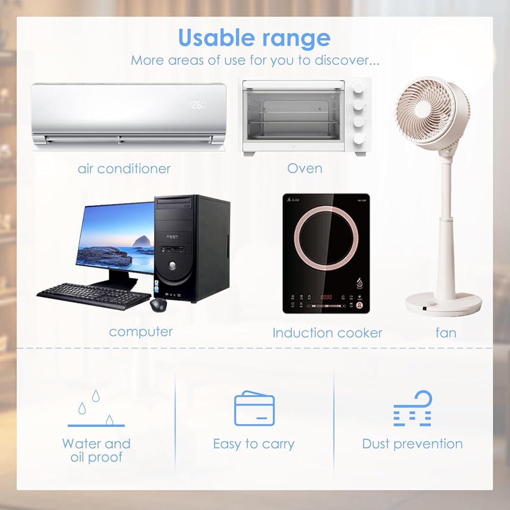 WIDE USE: The disposable dust cover is suitable for various kitchen appliances, such as ovens, pressure cookers, blenders, toasters, air fryers, and many other appliances, and can also be used for computers, fans, and so on.