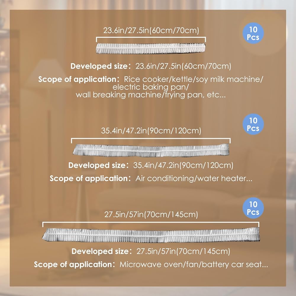 PACKAGE INCLUDES: You will receive a set of three sizes of elastic dust cover, 10pcs for each size, the combination of these three sizes is enough to meet most of your home appliance needs.