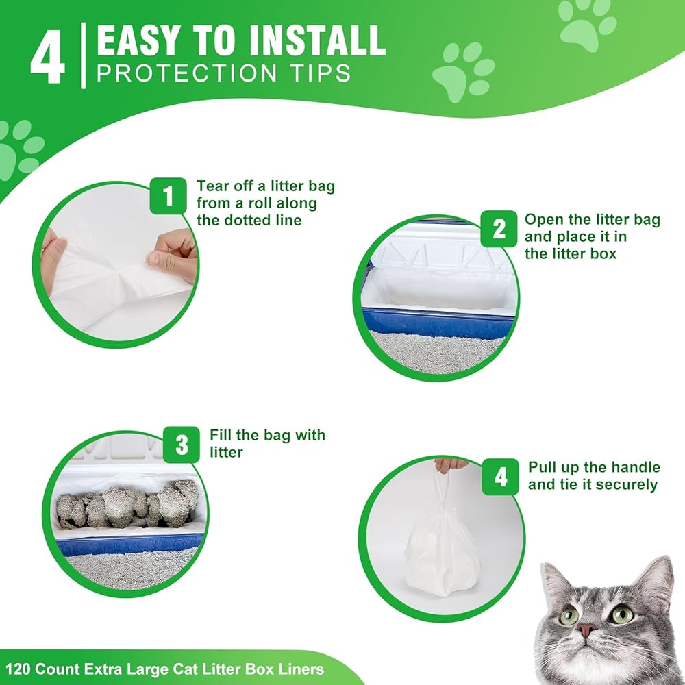 Reduce Cleaning Time:Package includes 120 pcs cat litter bags to meeting your usage and replacement needing, creating a good toilet environment for your pet cat, making cleaning the litter box easier, reducing your cleaning time, keeping the room clean, and giving you more time to play with your cat.