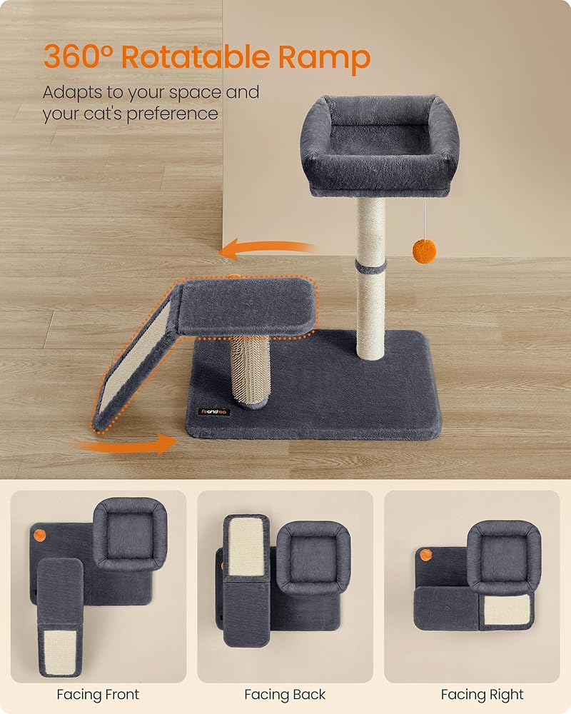 【منحدر قابل للتعديل، متعة إضافية】جزء منحدر الخدش قابل للدوران 360 درجة، ويتكيف مع المساحات المختلفة مع توفير زوايا مختلفة لتسلق صديقك المكسو بالفراء. سوف تحب قطتك استكشاف كل الاحتمالات الجديدة!