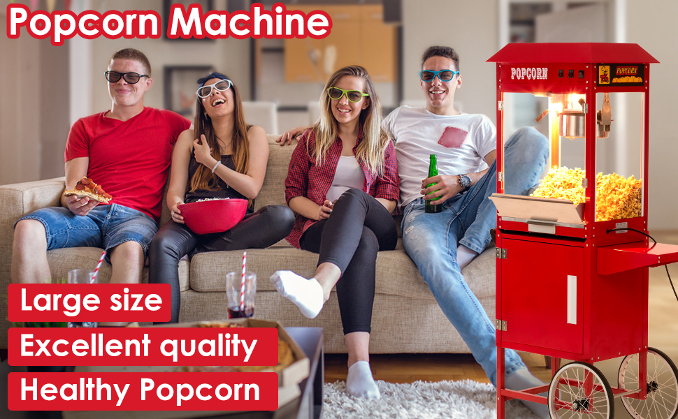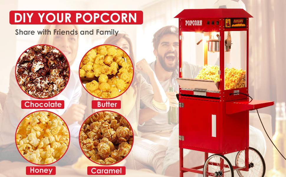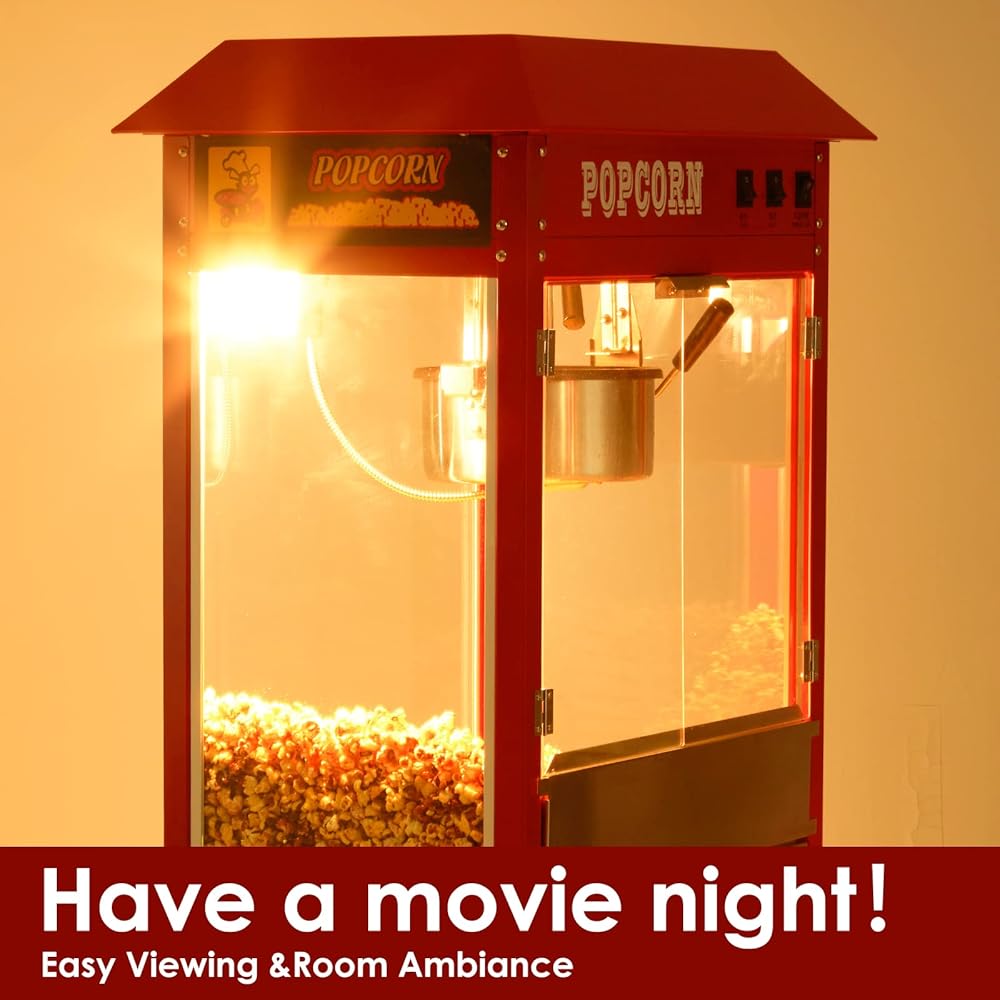 آلة الفشار التجارية، عربة آلة الفشار مع غلاية من الفولاذ المقاوم للصدأ سعة 8 أونصة تصنع ما يصل إلى 32 كوبًا، سطح تسخين ساخن، آلة صنع الفشار العتيقة، أحمر
