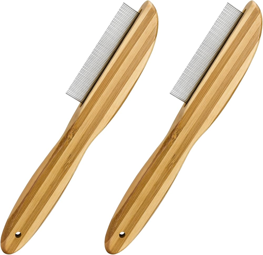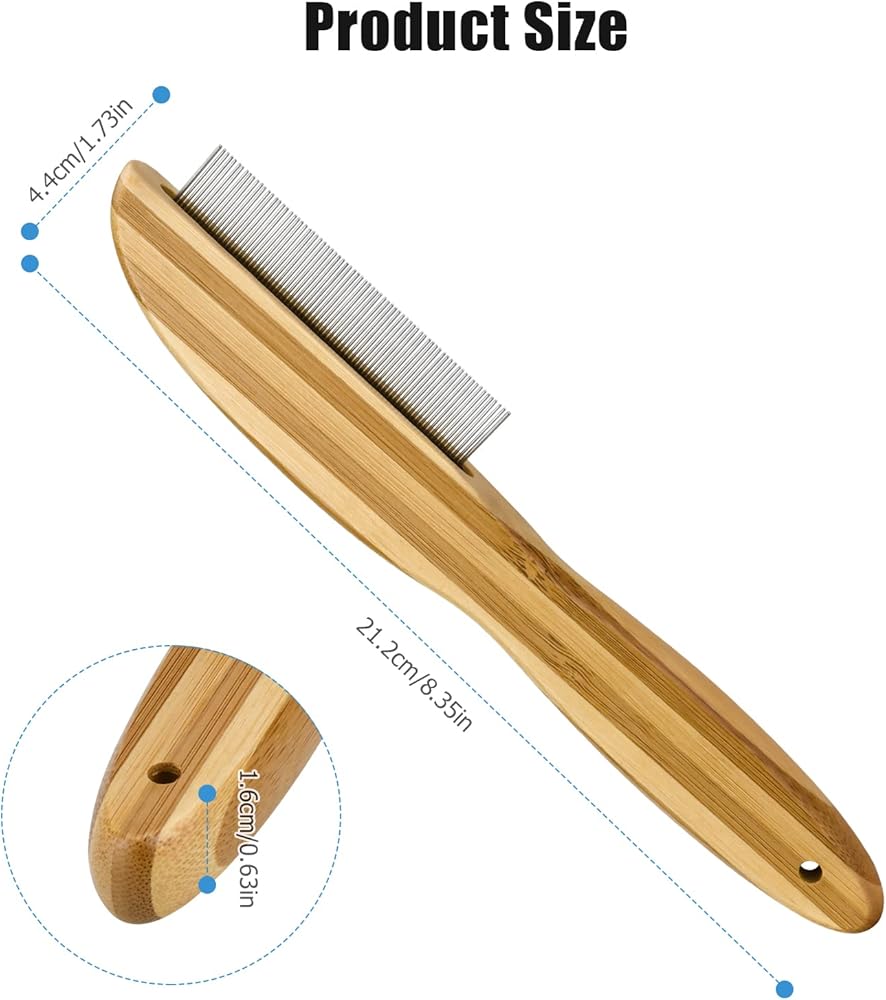 مشط قشرة الرأس مكون من قطعتين، مشط ذو أسنان دقيقة من الفولاذ المقاوم للصدأ ومقبض خشبي ومزيل للقشرة ومشط قمل البراغيث متعدد الوظائف وفرشاة للعناية بالشعر للأطفال والكبار والحيوانات الأليفة والكلاب