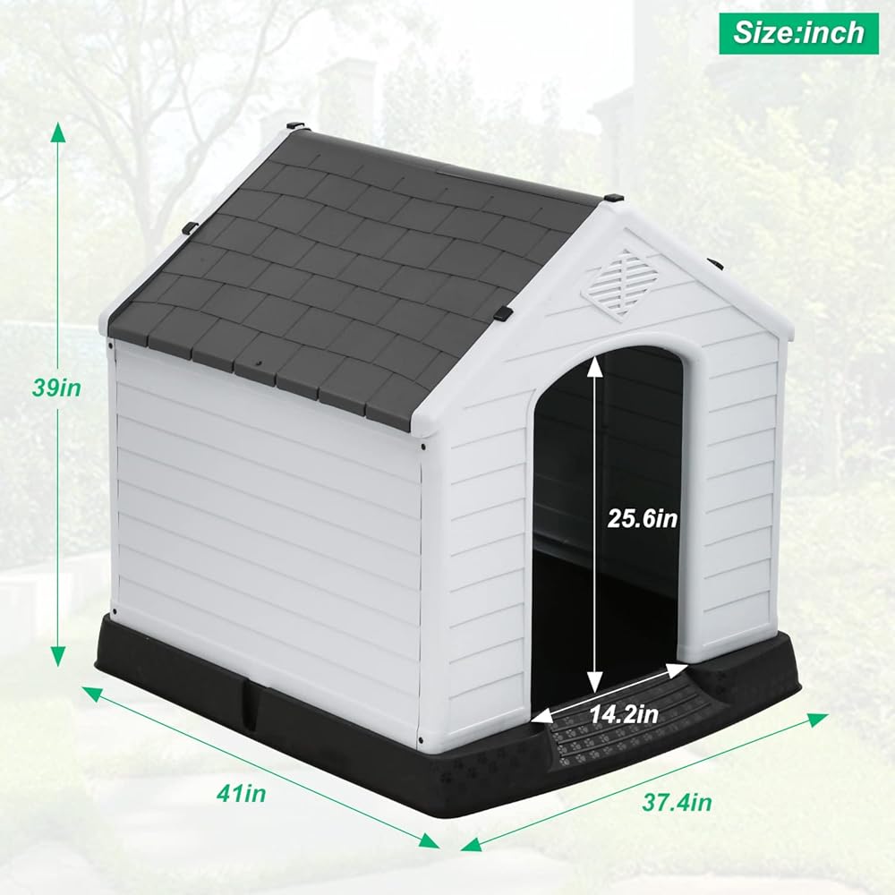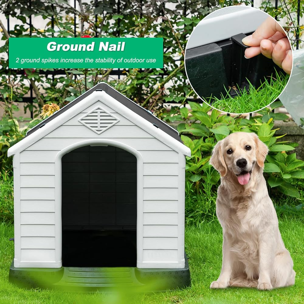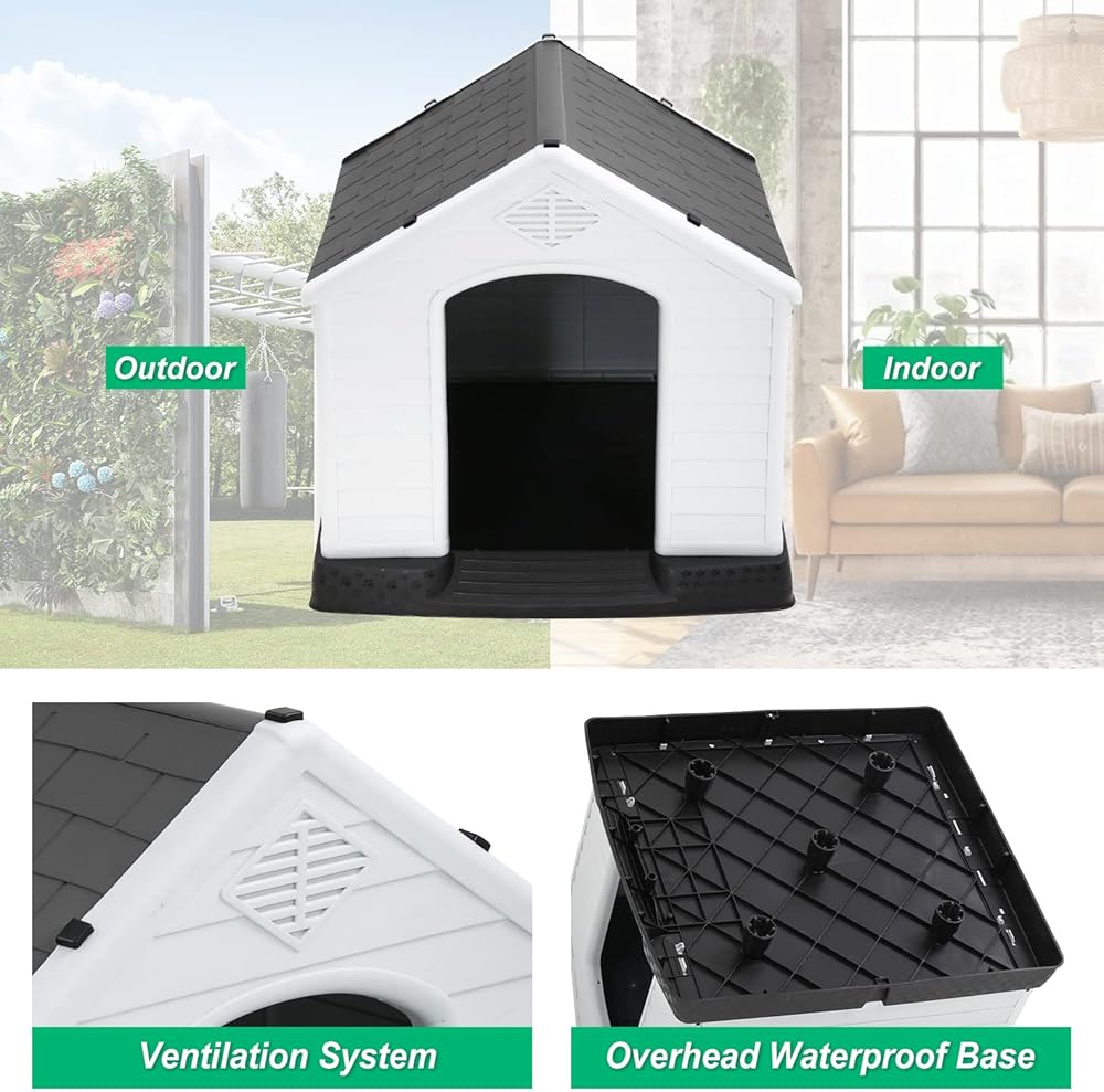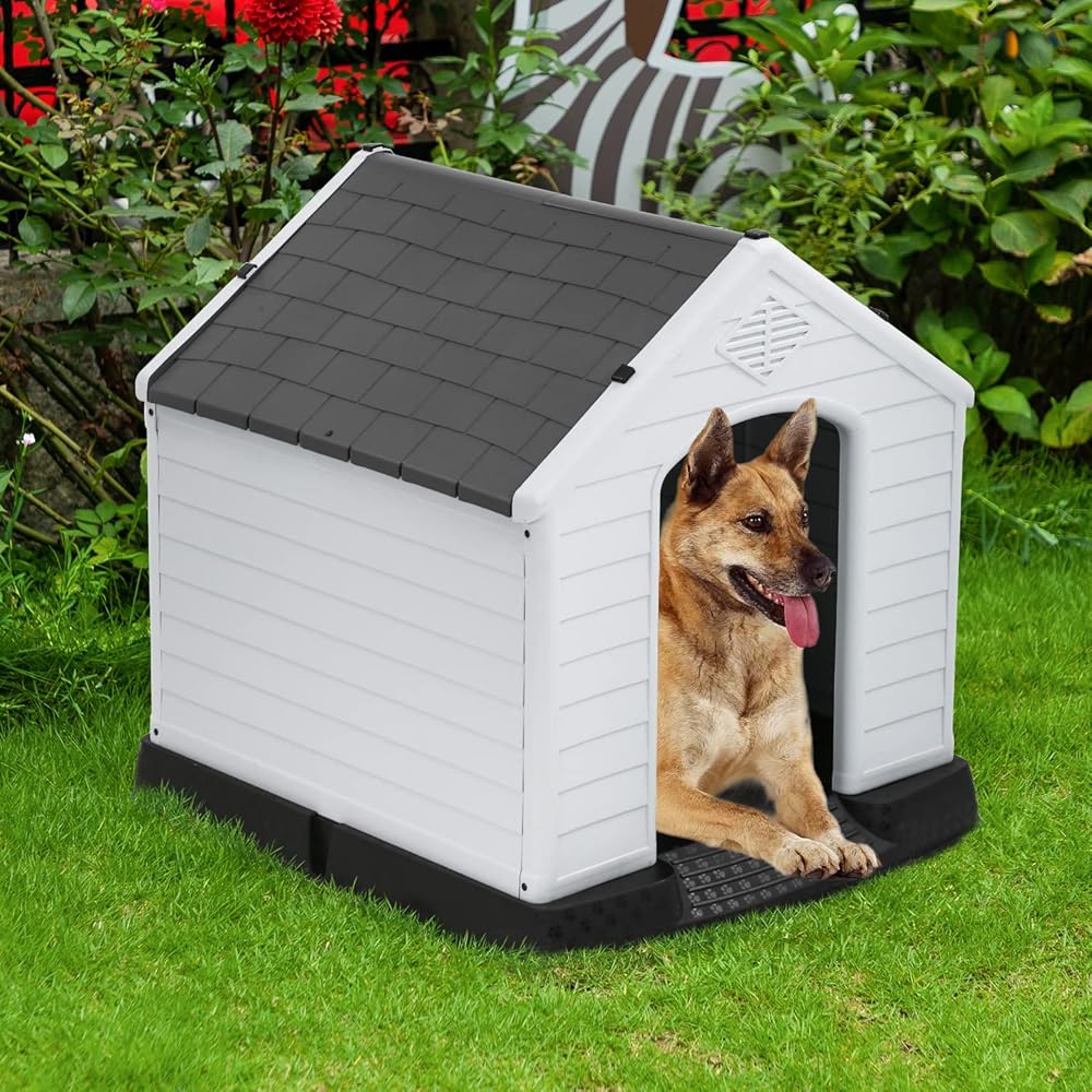 Our dog house is made of protection of the environment PP material, anti-corrosive & anti-rust and weather resistance. Perfect for use in the backyard garden, providing a perfect home for your pet.