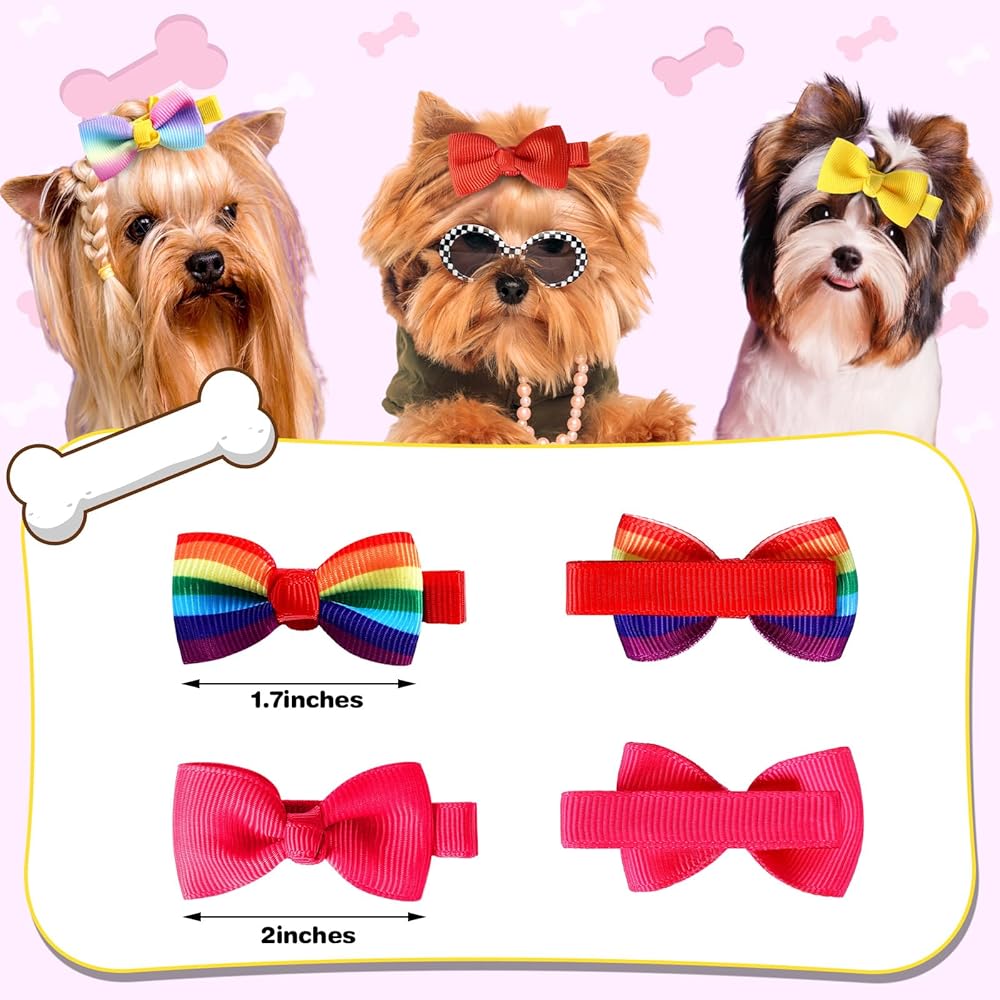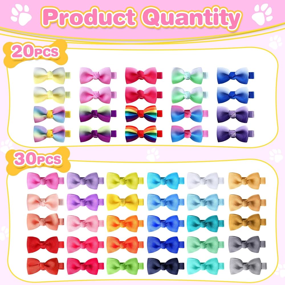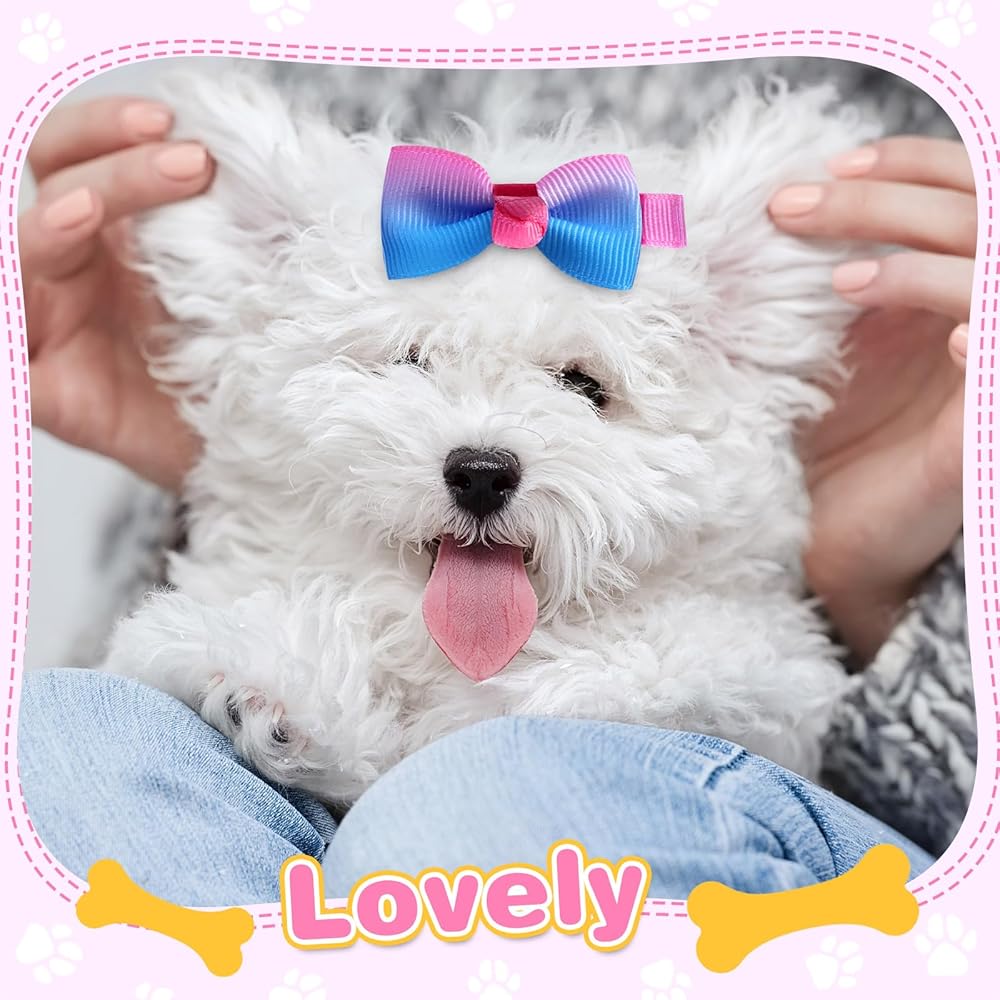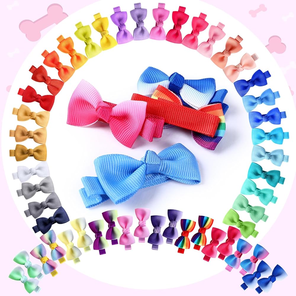 • Colorful Variety Set: bring out your pet's personality with our set of 50 vibrant dog hair bow clips; The package includes a mix of 20 bows in gradient color and 30 in solid colors; Wear them differently every day, or share them among your pets to keep an adorable look